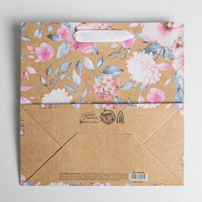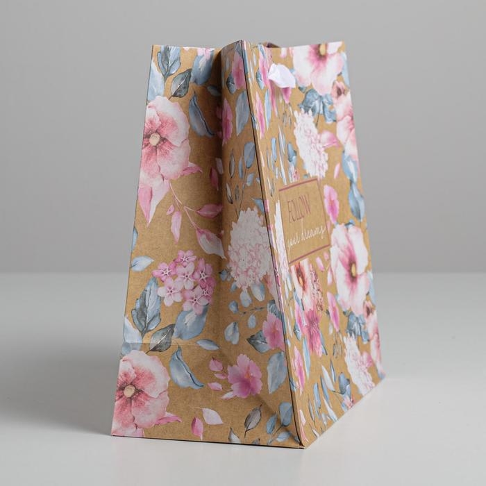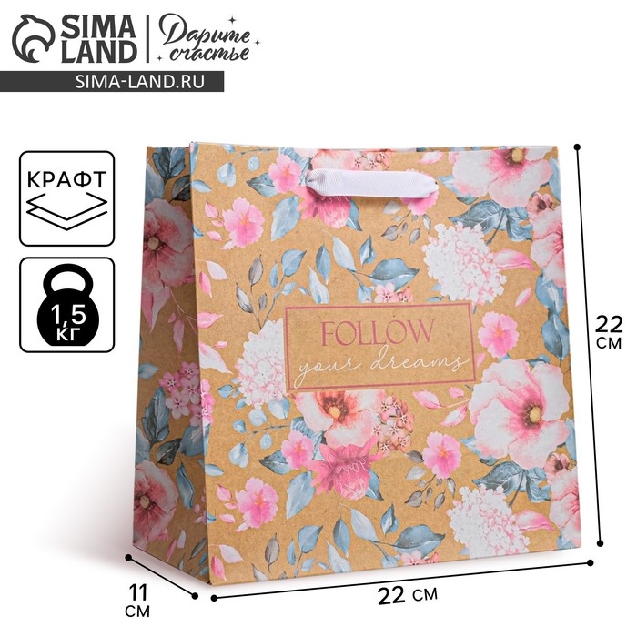 Пакет подарочный крафтовый квадратный, упаковка, «Follow your dreams», 22 х 22 х 11 см