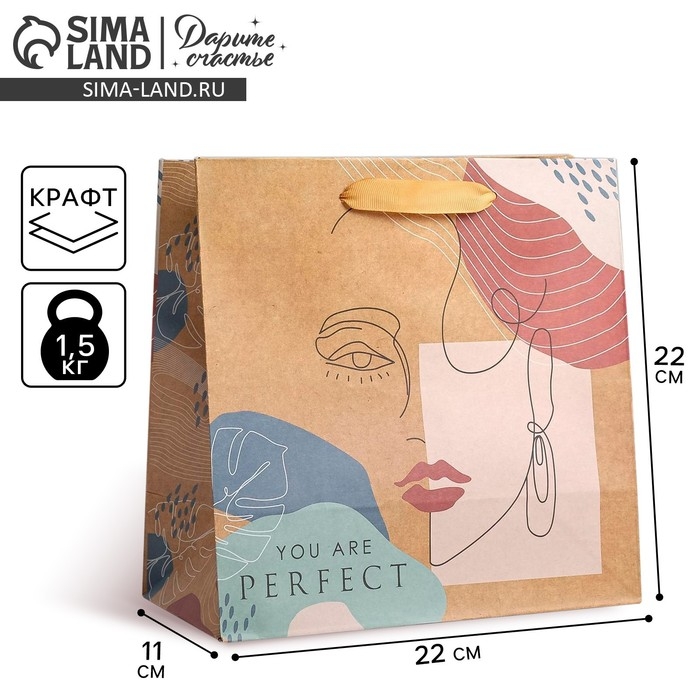 Пакет подарочный крафтовый квадратный, упаковка, «You are perfect», 22 х 22 х 11 см