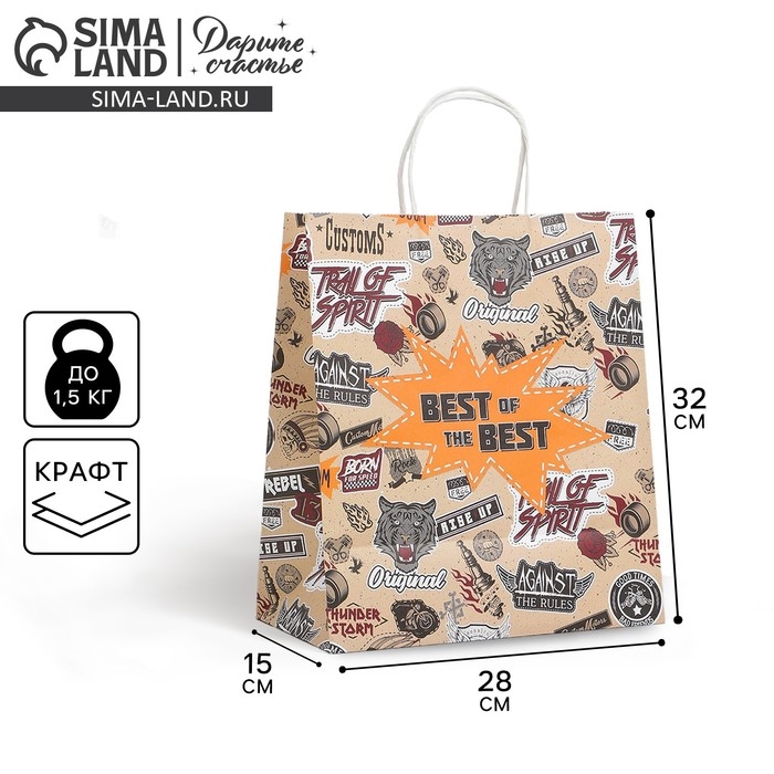 Пакет подарочный крафтовый, упаковка, Best, 28 х 32 х 15 см