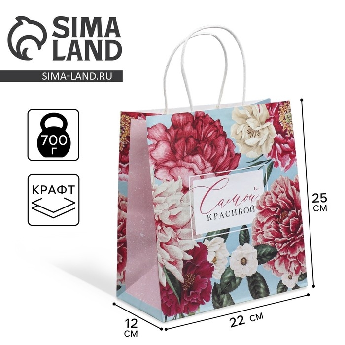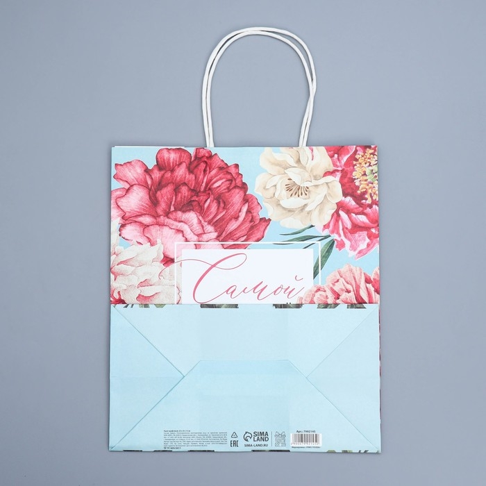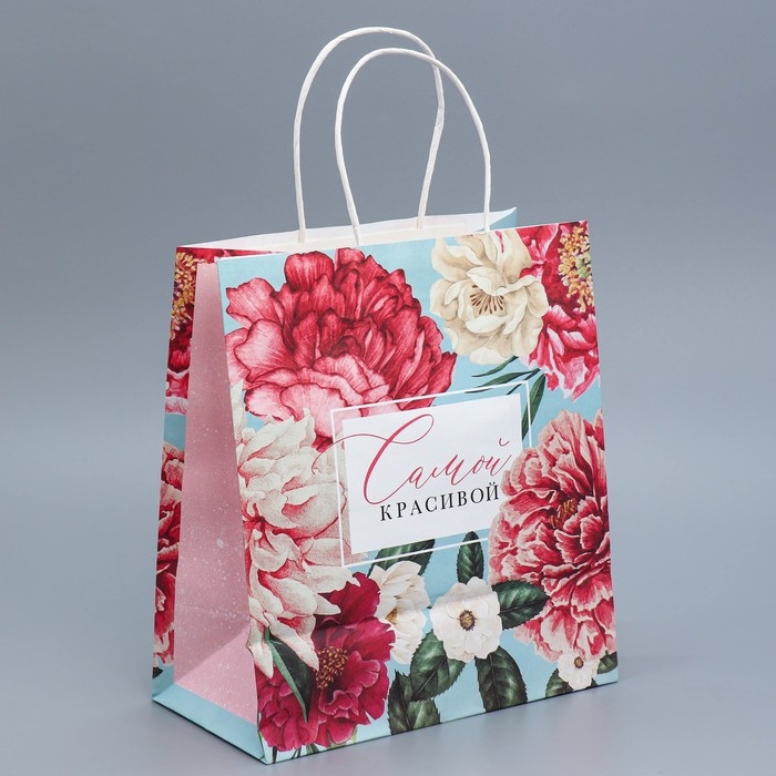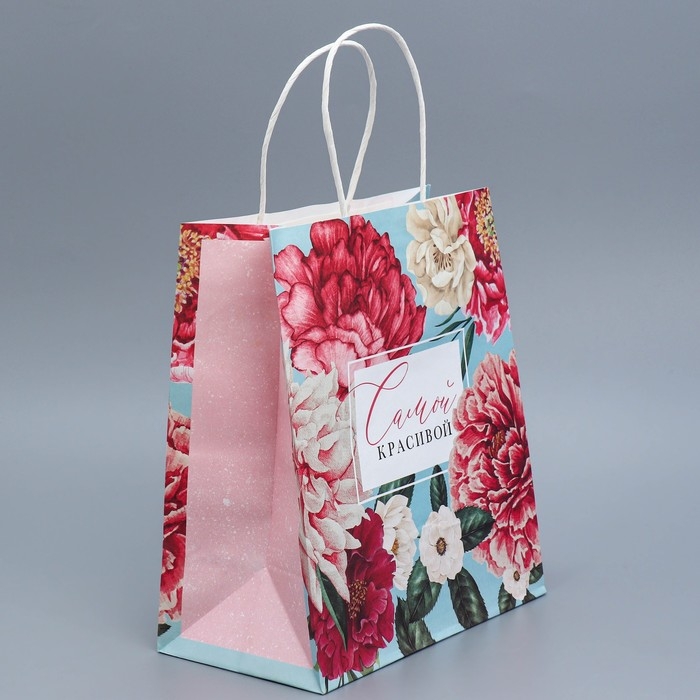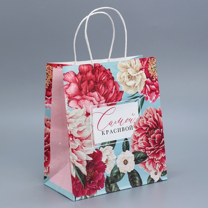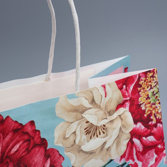 Пакет подарочный крафтовый, упаковка, «Цветочный», 22 х 25 х 12 см