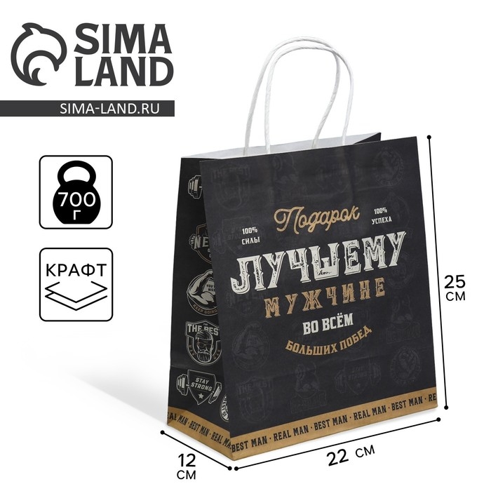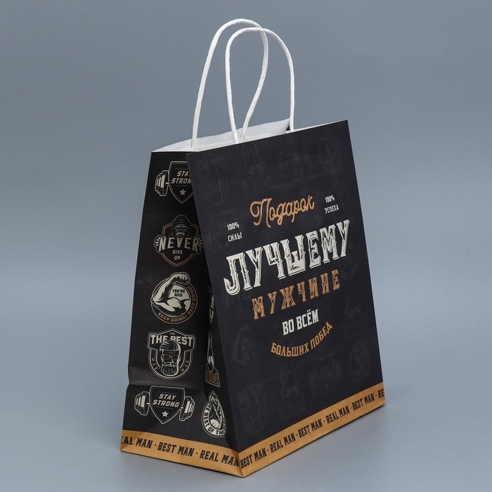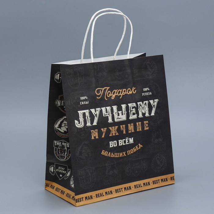 Пакет подарочный крафтовый, упаковка, «Настоящему мужчине», 22 х 25 х 12 см