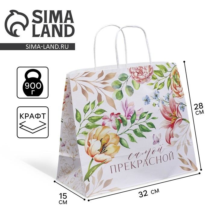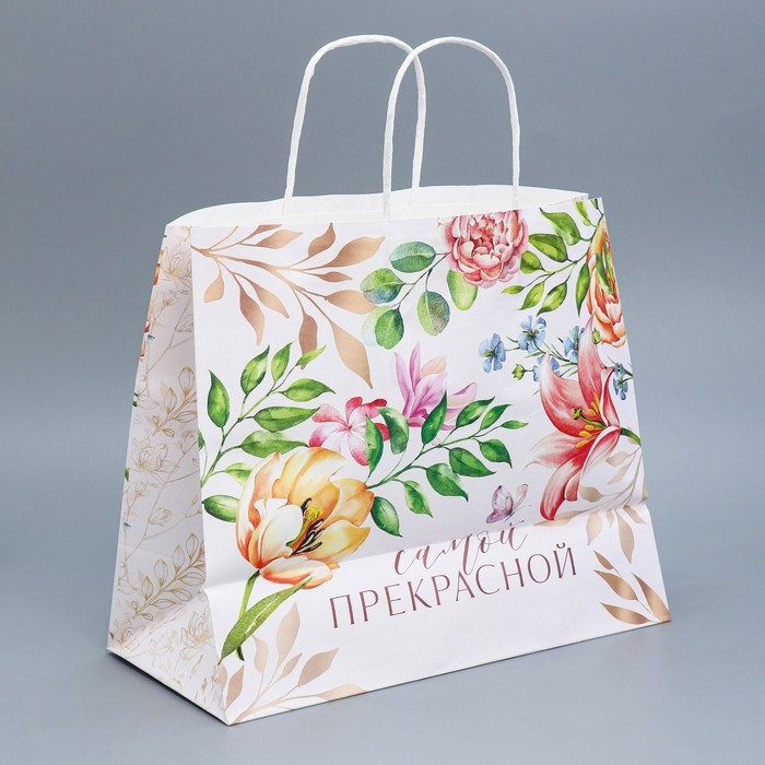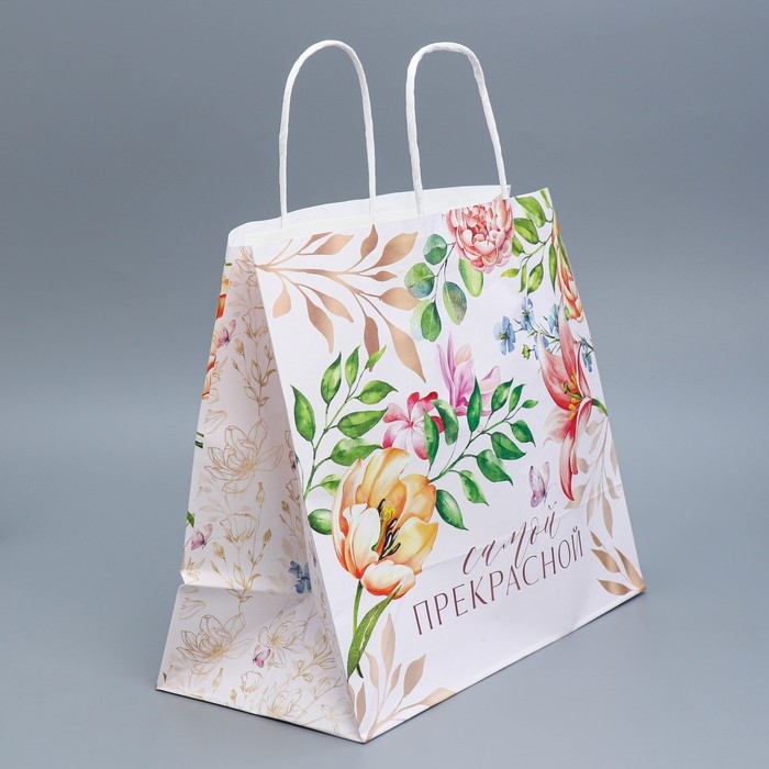 Пакет подарочный крафтовый, упаковка, «Самой прекрасной», 32 х 28 х 15 см