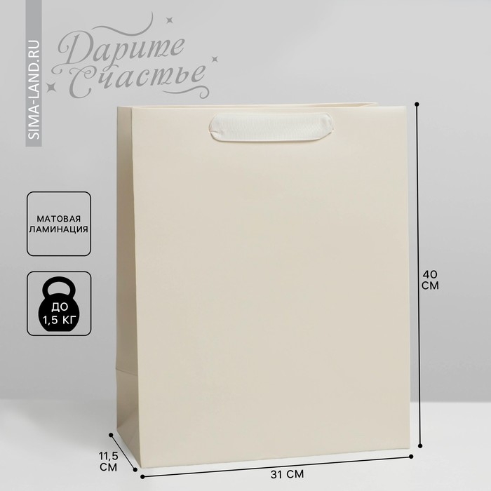 Пакет подарочный ламинированный, упаковка, «Молочный», L 31 х 40 х 11.5 см