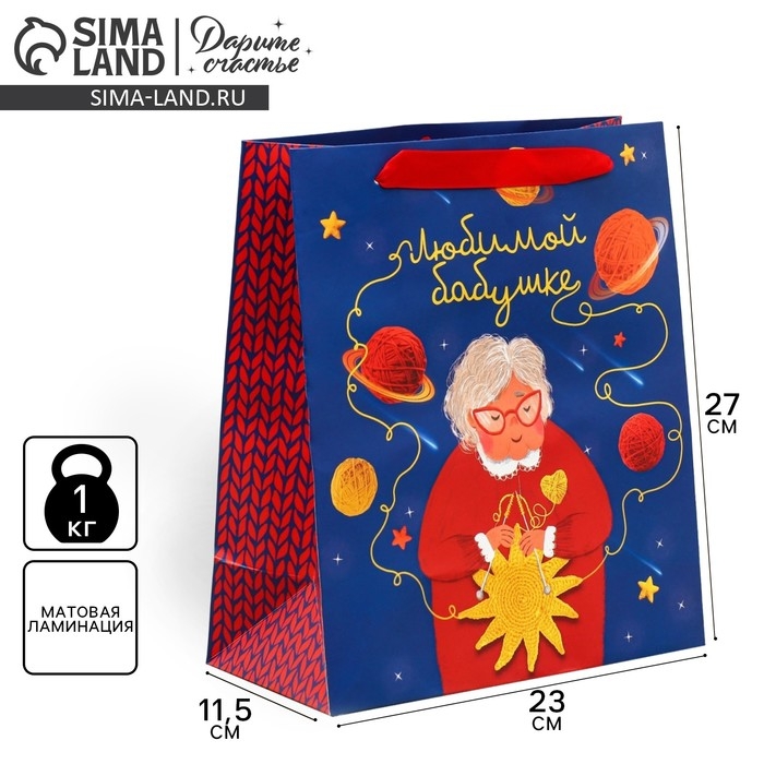 Пакет подарочный ламинированный вертикальный, упаковка, «Бабушке», ML 27 х 23 х 11,5 см