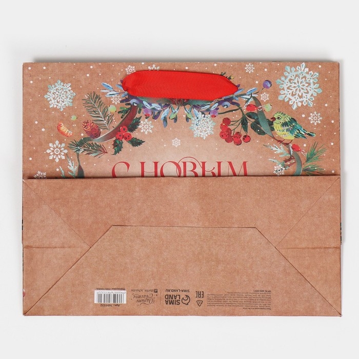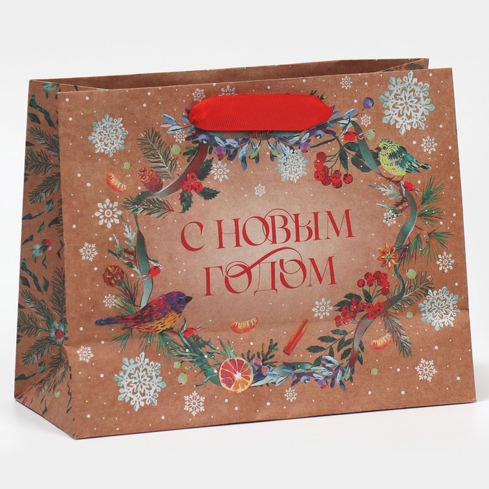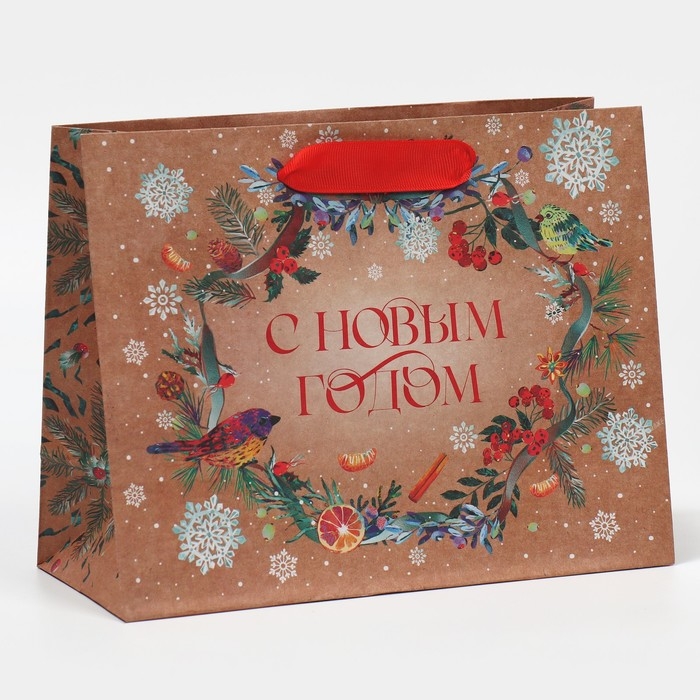 Пакет подарочный новогодний крафтовый горизонтальный «Новогоднее чудо», MS 23 х 18 х 10 см, Новый год