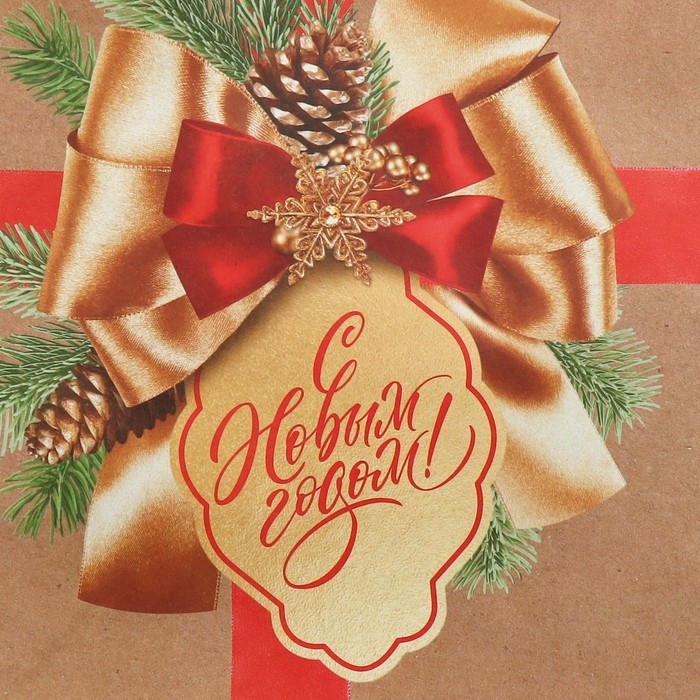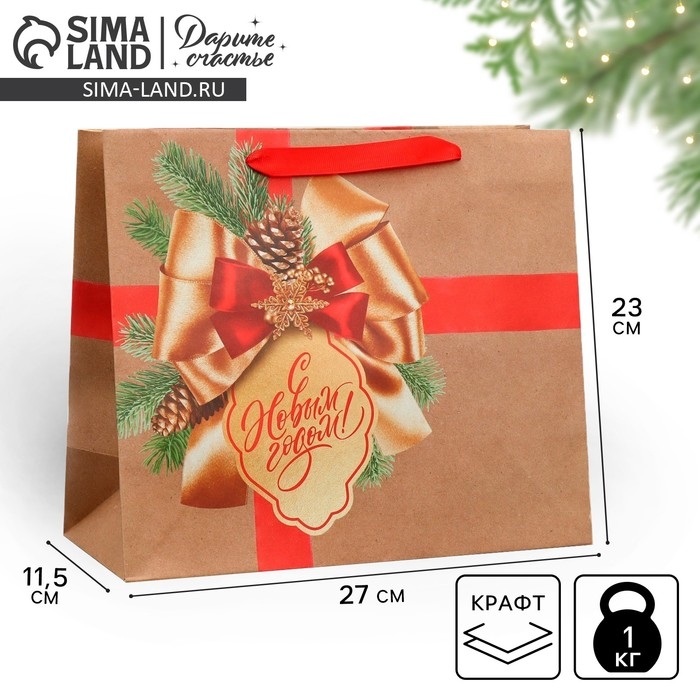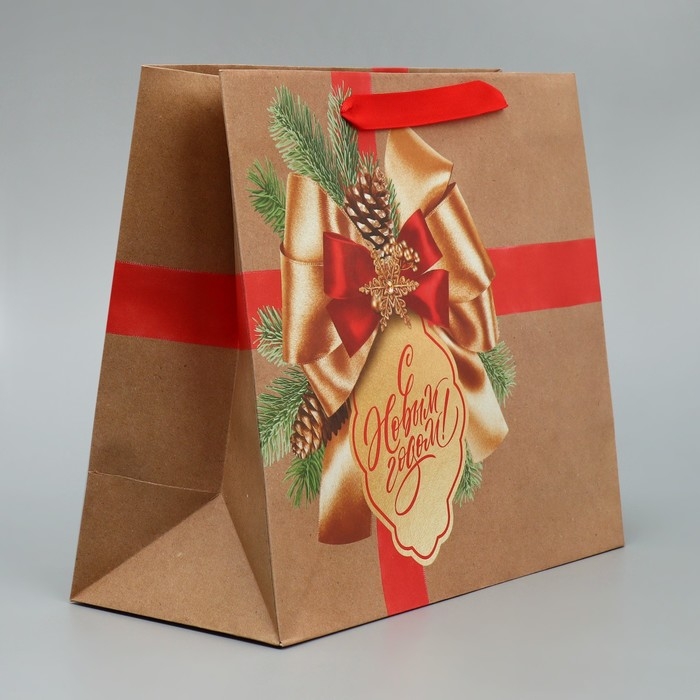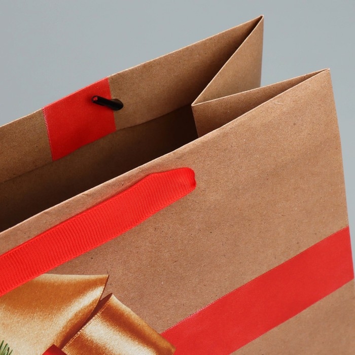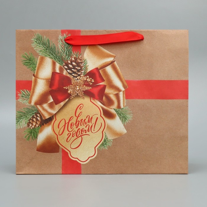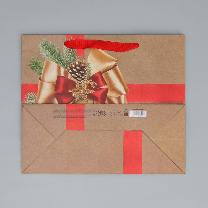 Пакет подарочный новогодний крафтовый горизонтальный «Подарок в Новый год», ML 27 х 23 х 11.5 см, Новый год