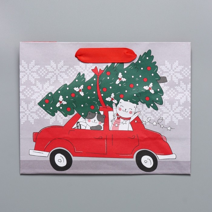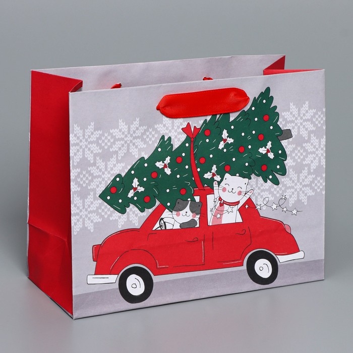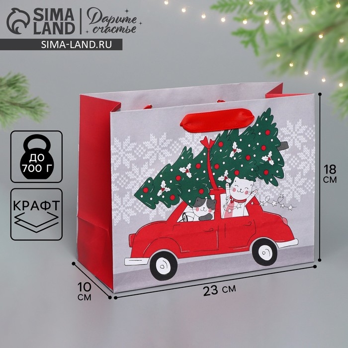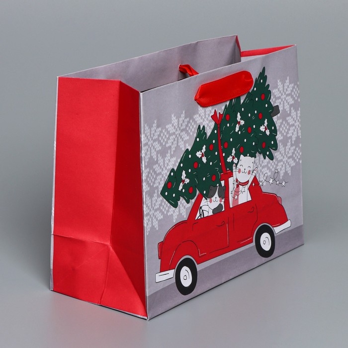 Пакет подарочный новогодний крафтовый горизонтальный «Спешу к тебе», MS 23 х 18 х 10 см, Новый год