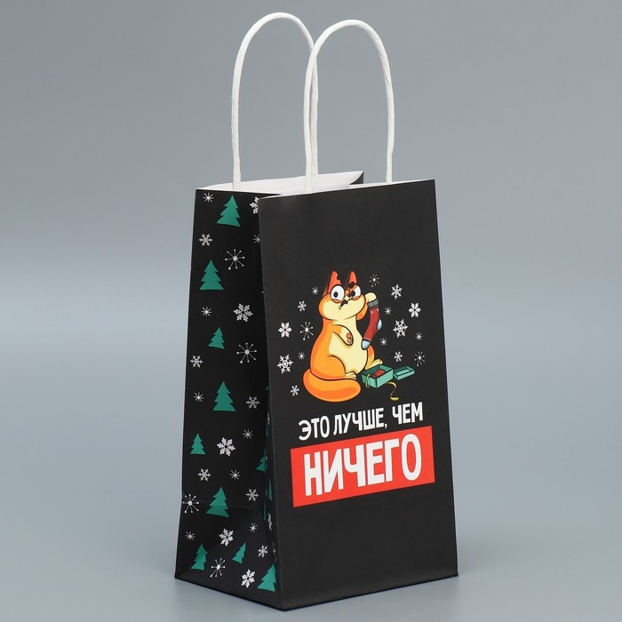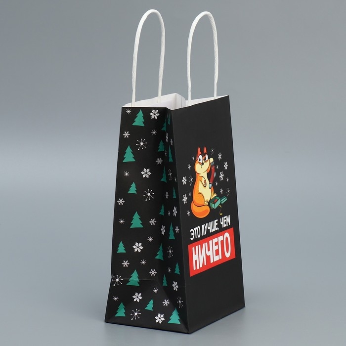 Пакет подарочный новогодний крафтовый «Ничего», 12 х 21 х 9 см, Новый год