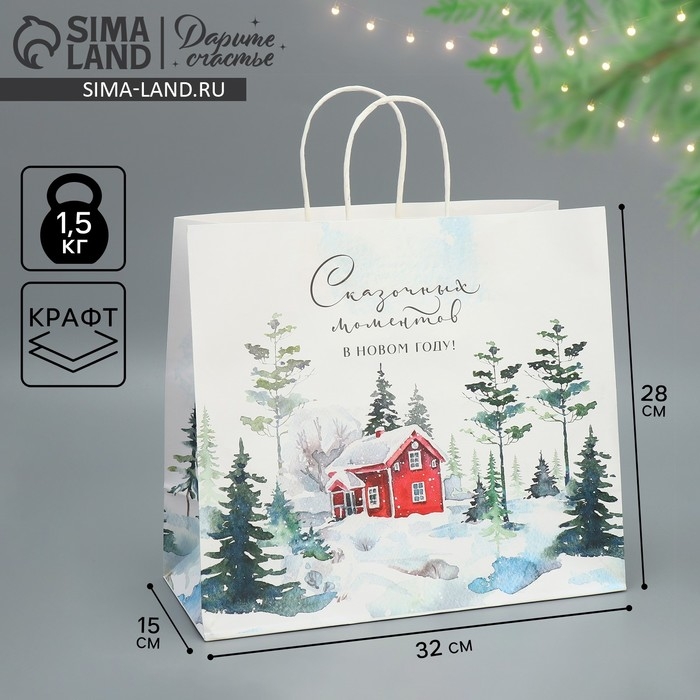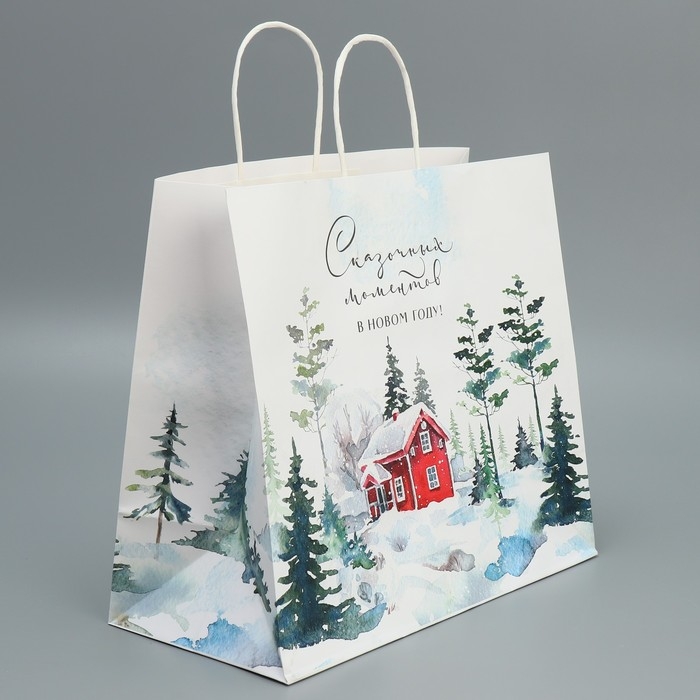 Пакет подарочный новогодний крафтовый «Сказка», 32 х 28 х 15 см, Новый год