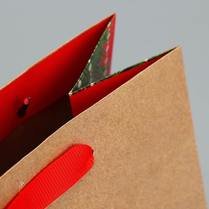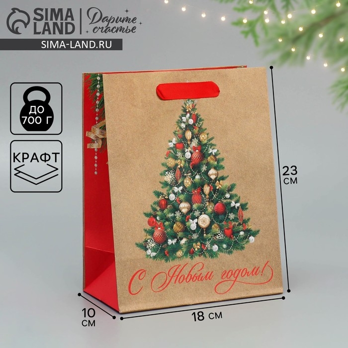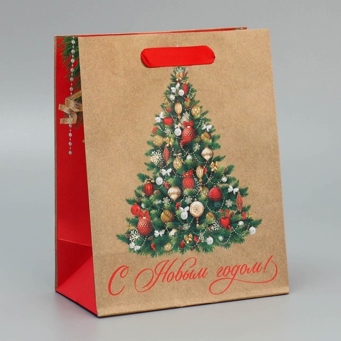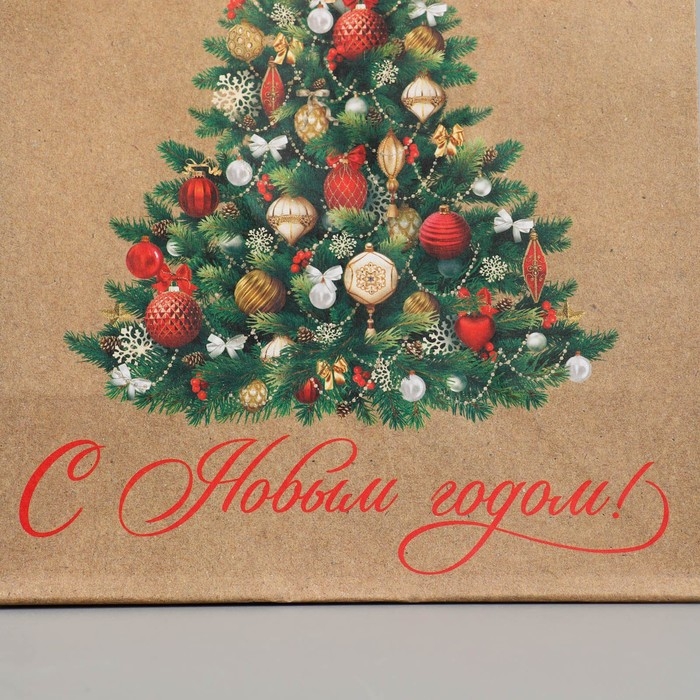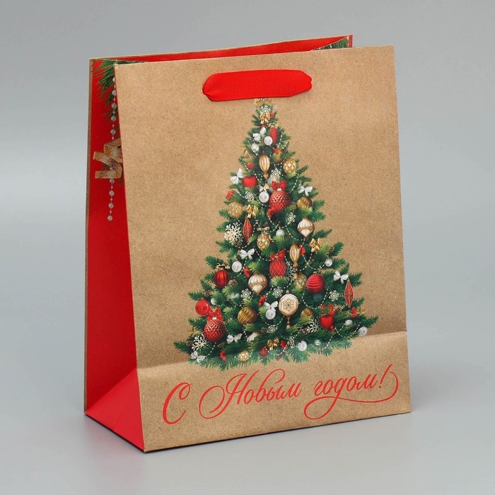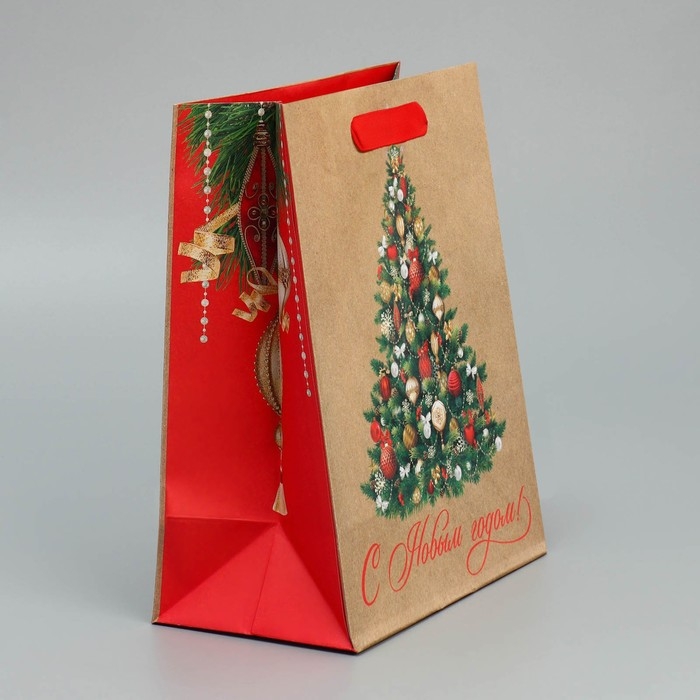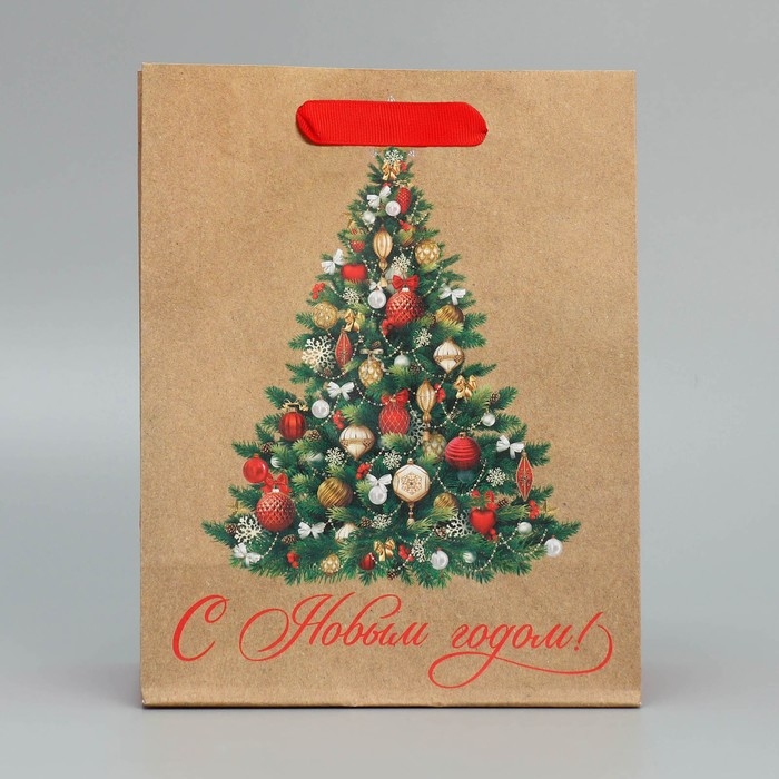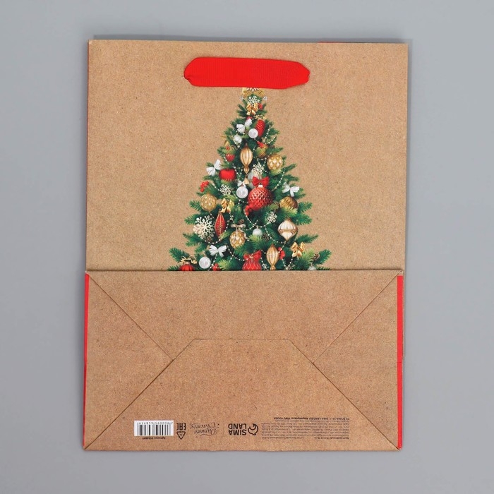 Пакет подарочный новогодний крафтовый вертикальный «Ёлочка», MS 18 х 23 х 10 см, Новый год