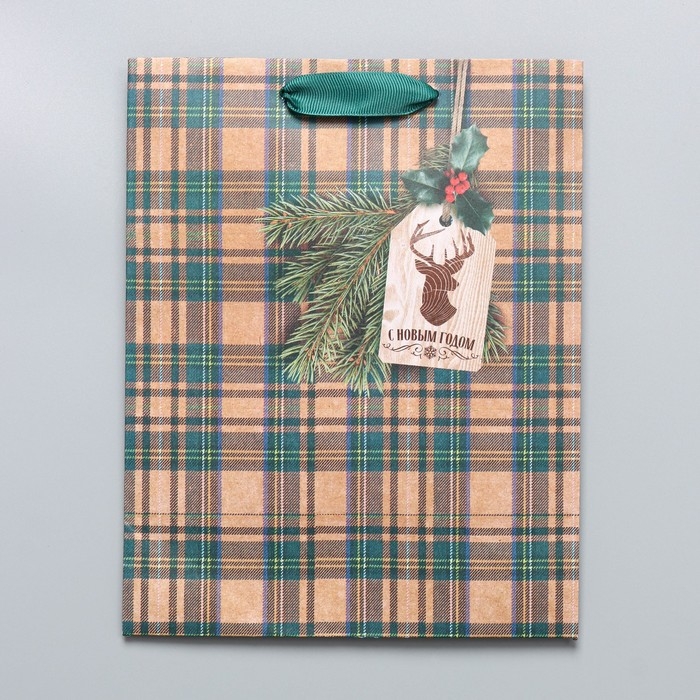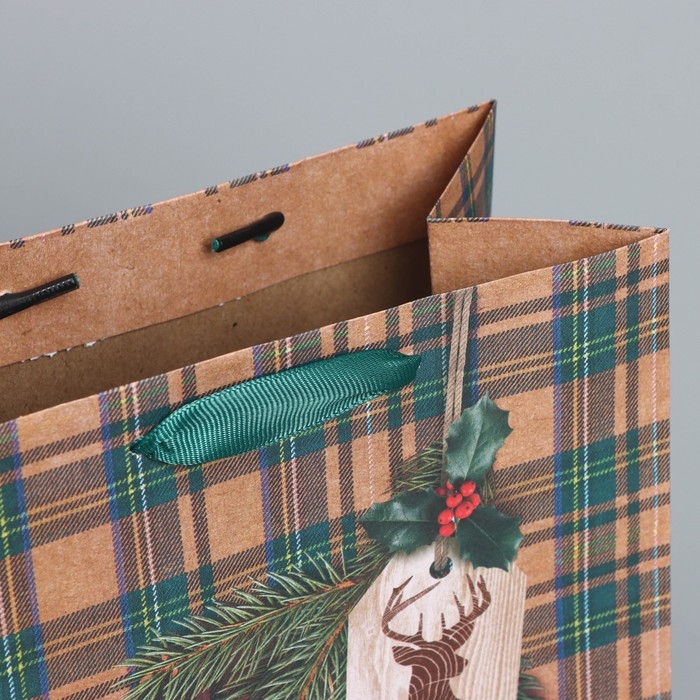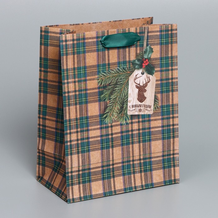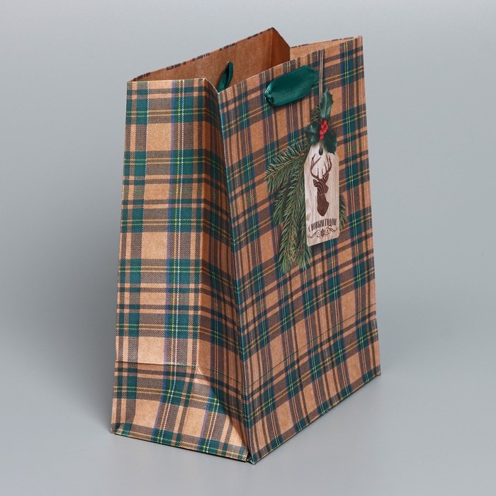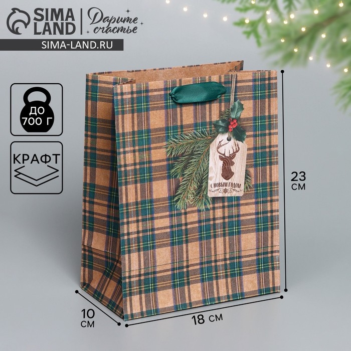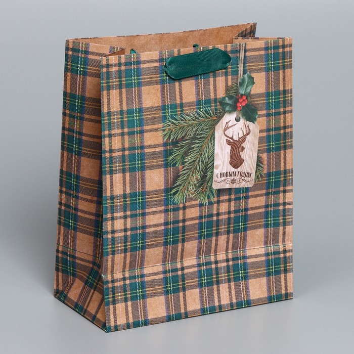 Пакет подарочный новогодний крафтовый вертикальный «For man», MS 18 х 23 х 10 см, Новый год