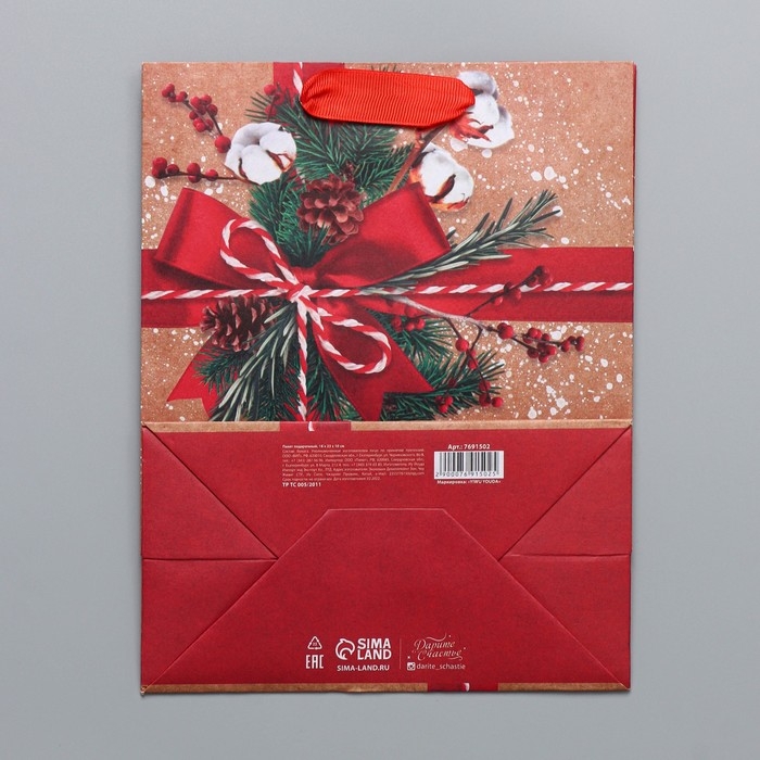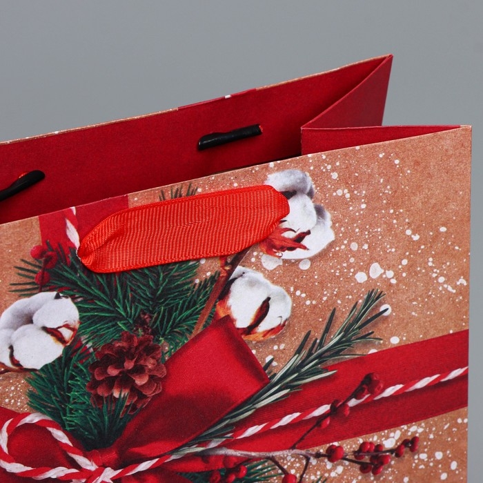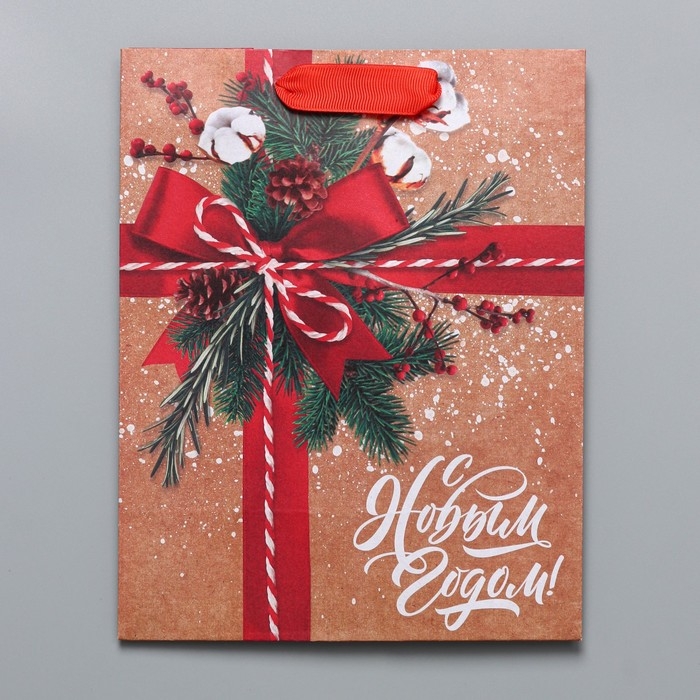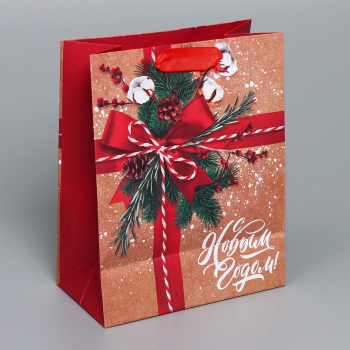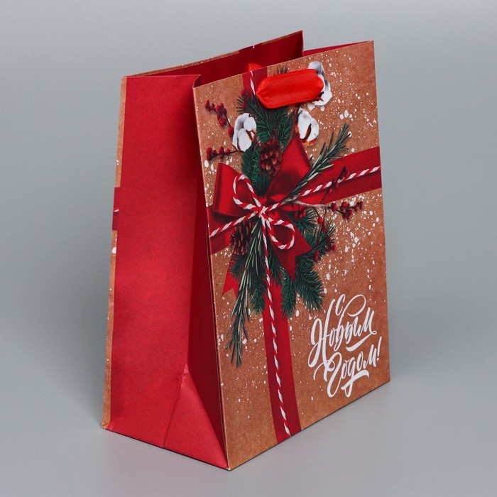 Пакет подарочный новогодний крафтовый вертикальный «К тебе с подарком», MS 18 х 23 х 10 см, Новый год