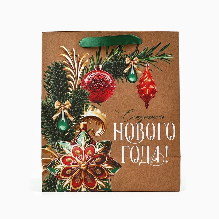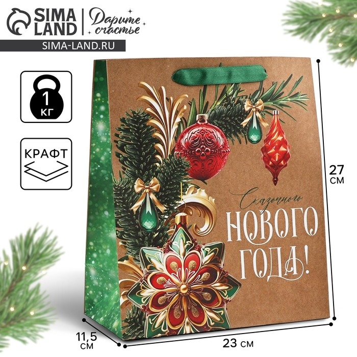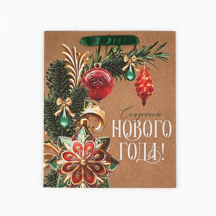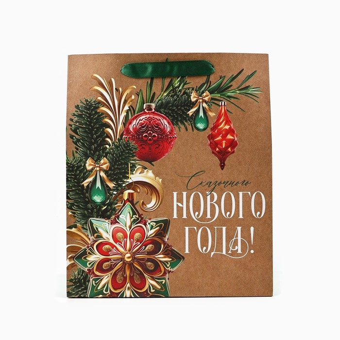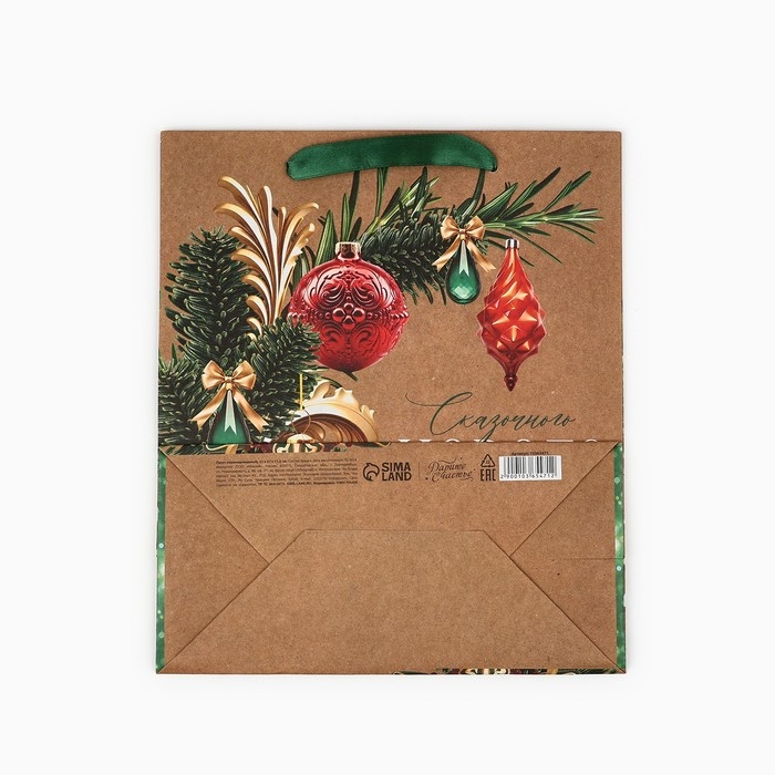Пакет подарочный новогодний крафтовый вертикальный «Сказочный Новый год», ML 23 х 27 х 11.5 см , Новый год