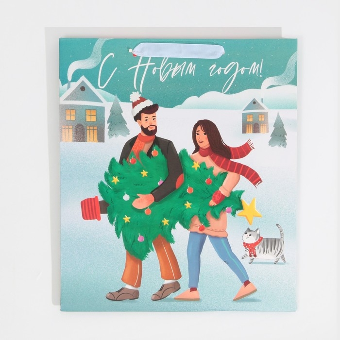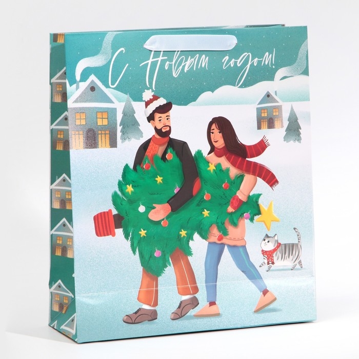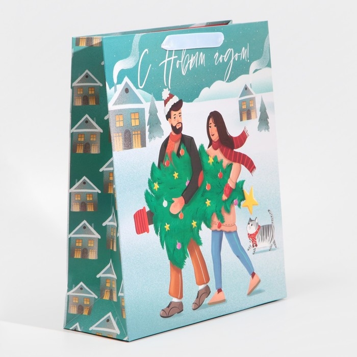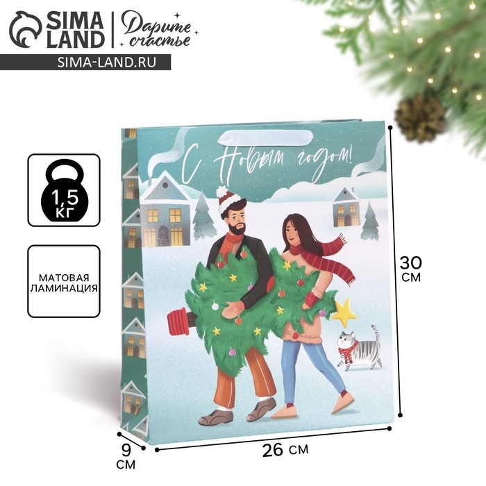 Пакет подарочный новогодний ламинированный «Ёлочка», M 26 х 30 х 9 см, Новый год