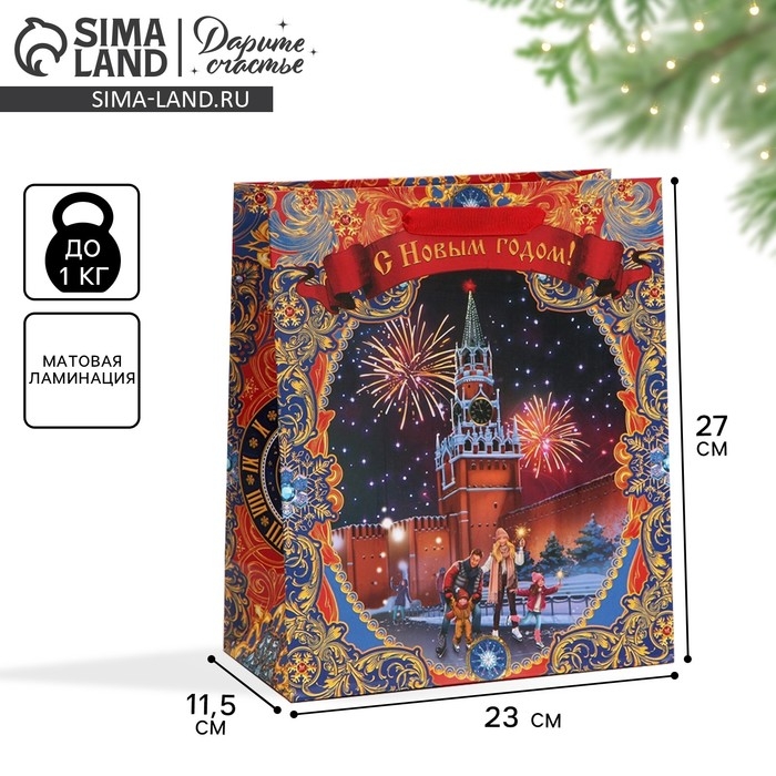 Пакет подарочный новогодний ламинированный «Красная площадь», ML 23 х 27 х 11,5 см, Новый год