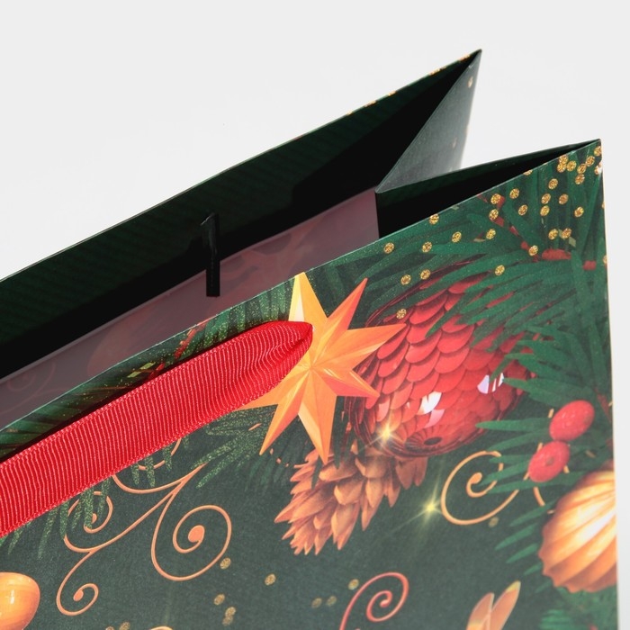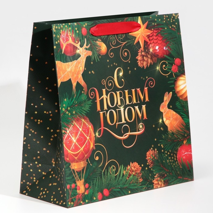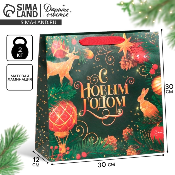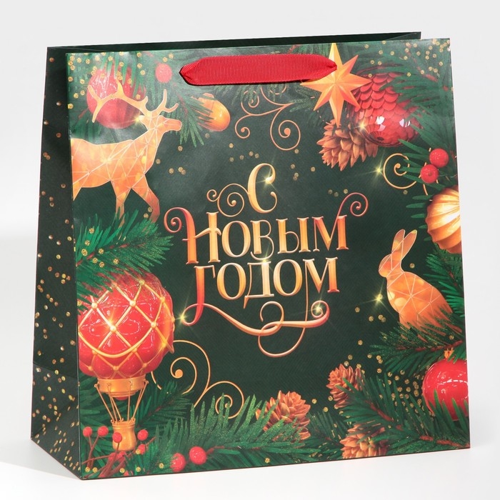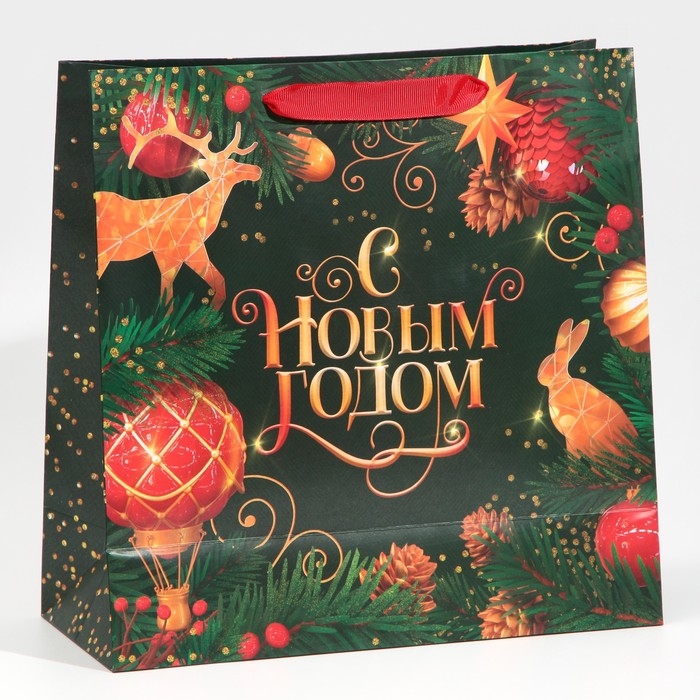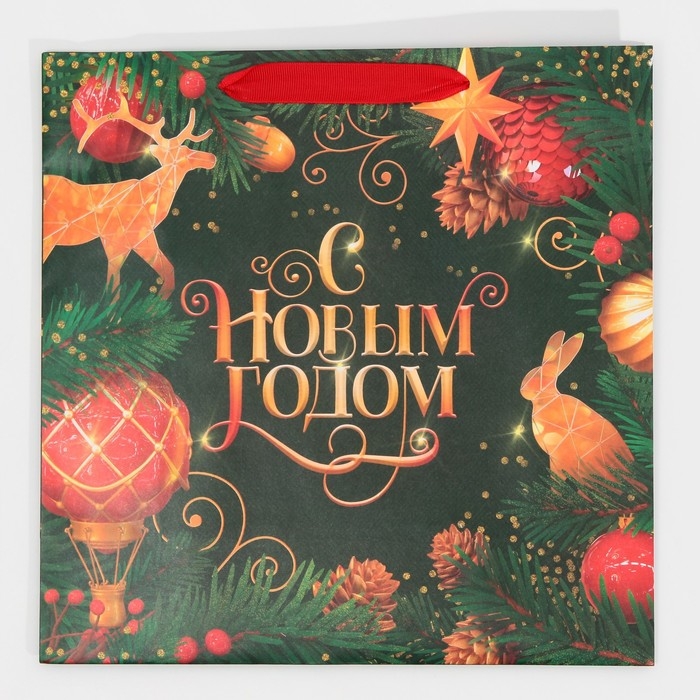 Пакет подарочный новогодний ламинированный квадратный «Gold», 30 х 30 х 12 см, Новый год
