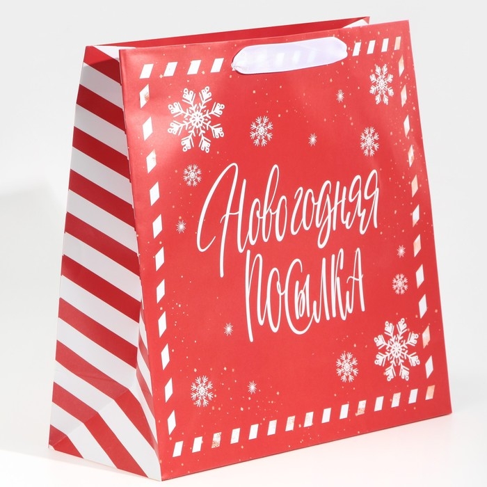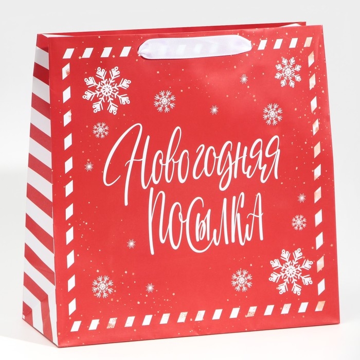 Пакет подарочный новогодний ламинированный квадратный «Новогодняя посылка», 30 х 30 х 12 см, Новый год