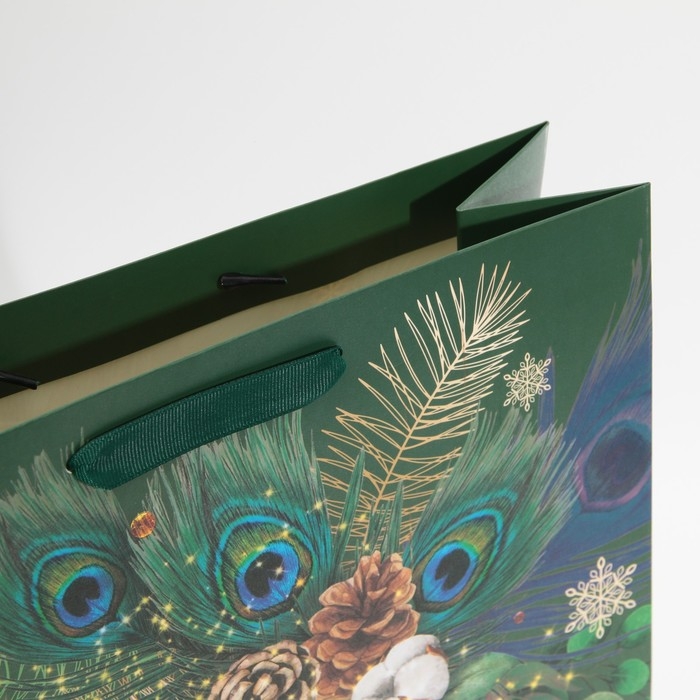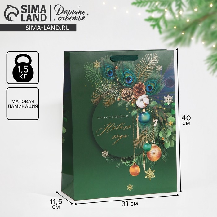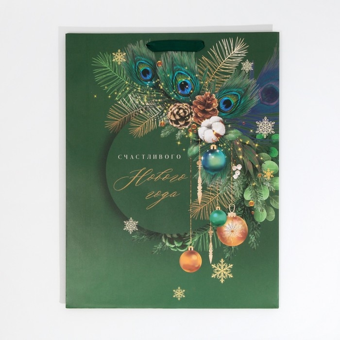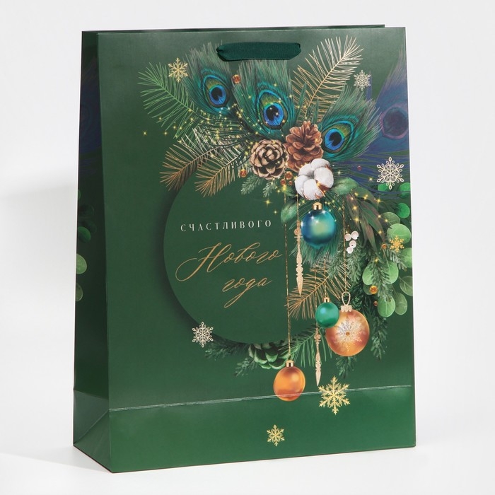 Пакет подарочный новогодний ламинированный «Малахит», L 31 х 40 х 11,5 см, Новый год