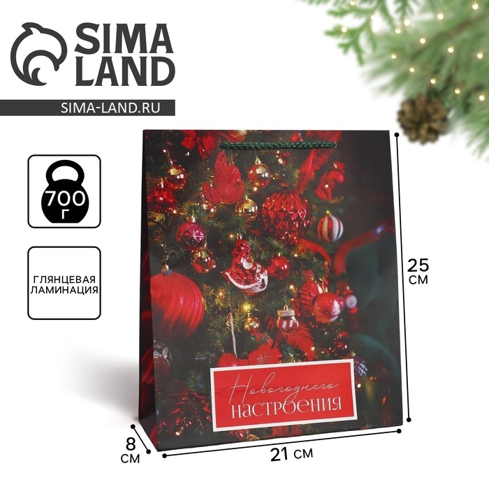Пакет подарочный новогодний ламинированный «Новогоднее настроение», ML 21 х 25 х 8 см, Новый год