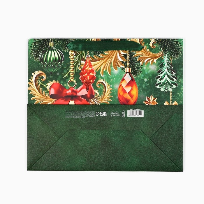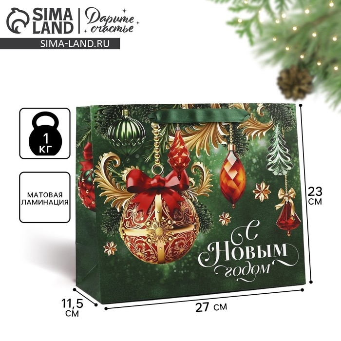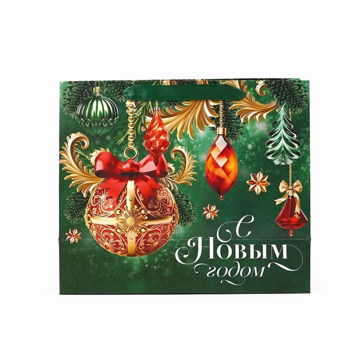 Пакет подарочный новогодний ламинированный «С Новым годом», ёлочные игрушки, ML 23 х 27 х 11.5 см , Новый год