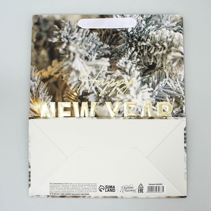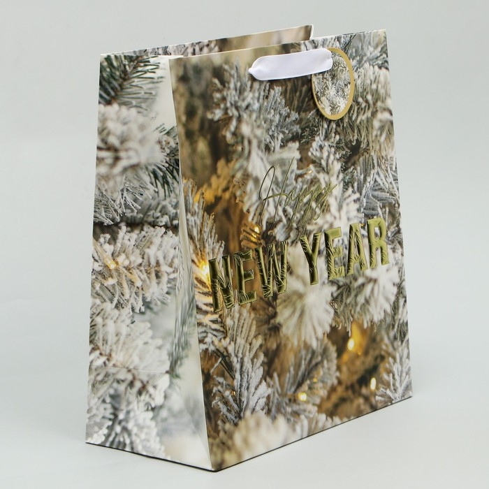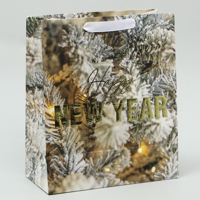 Пакет подарочный новогодний ламинированный вертикальный, конгревное тиснение «Счастливого Нового года», ML 23 х 27 х 11.5 см, Новый год