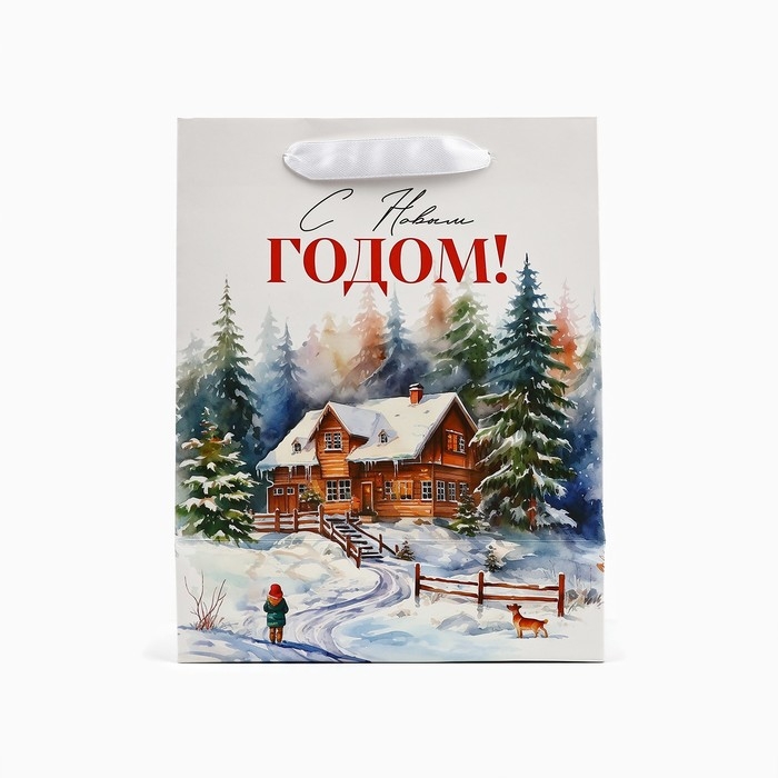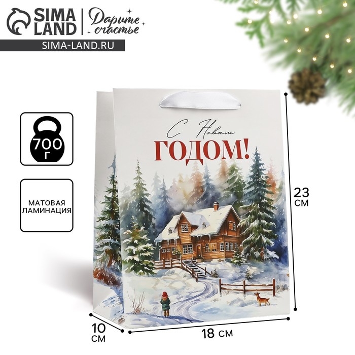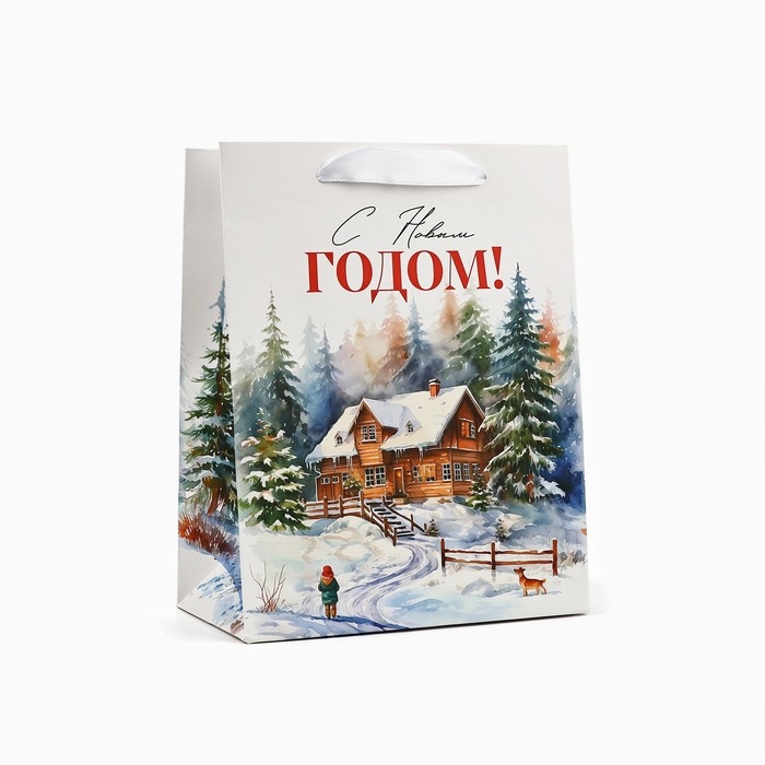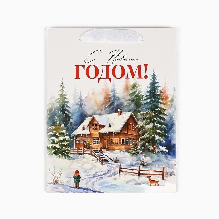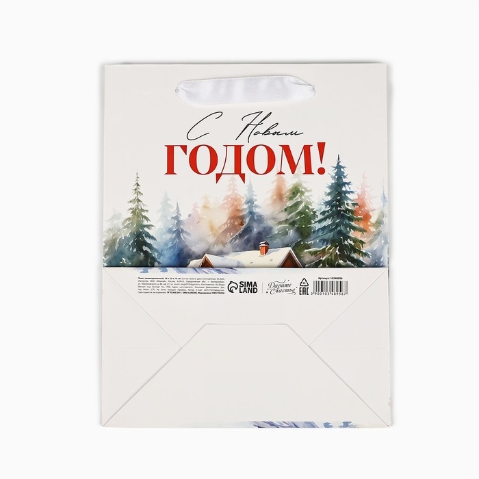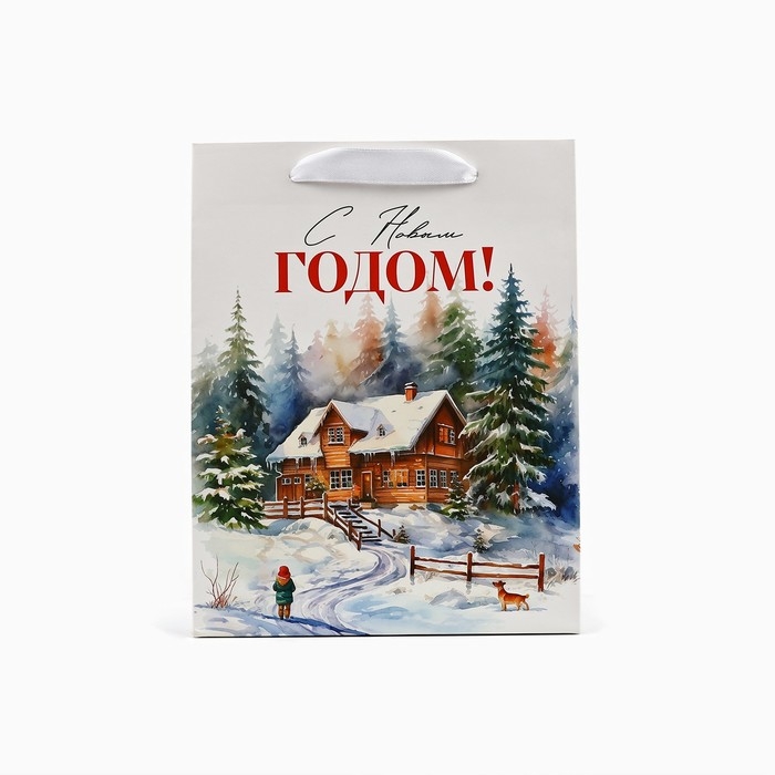 Пакет подарочный новогодний ламинированный «Зимний лес», деревня, MS 18 х 23 х 10 см , Новый год