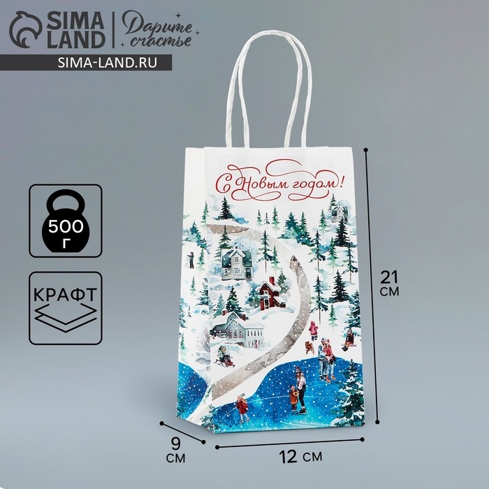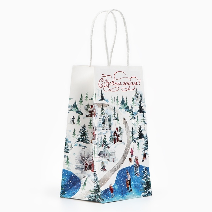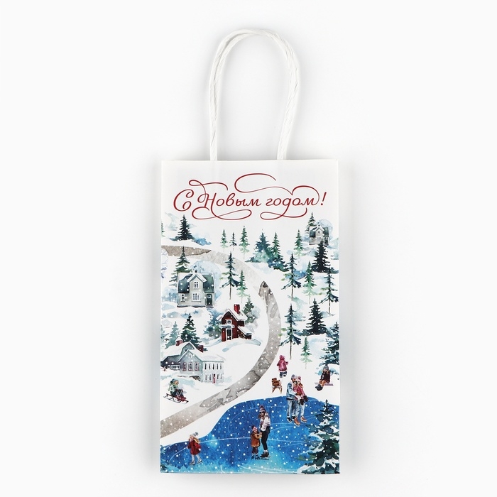 Пакет подарочный новогодний «С Новым годом», белый крафт, 12 х 21 х 9 см , Новый год