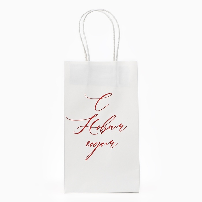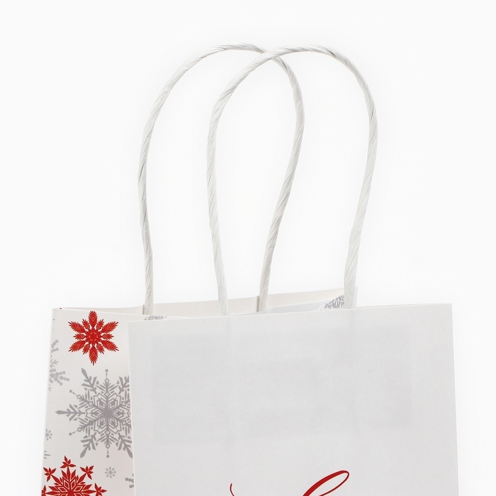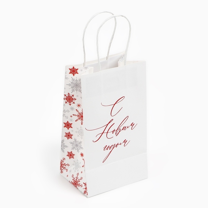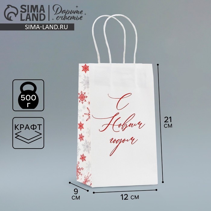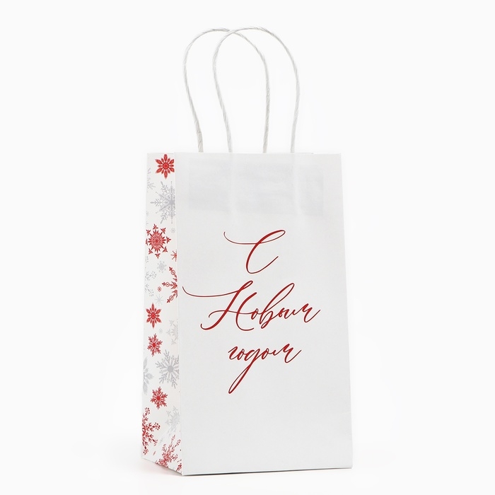 Пакет подарочный новогодний «С Новым годом», снежинки, белый крафт, 12 х 21 х 9 см , Новый год