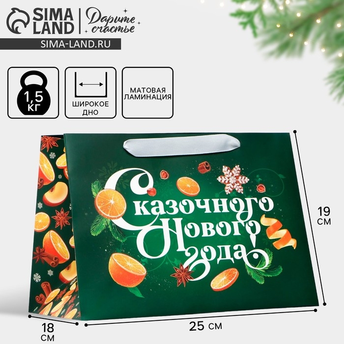 Пакет подарочный новогодний с широким дном «Новогодняя сказка», 25 х 19 х 18 см, Новый год