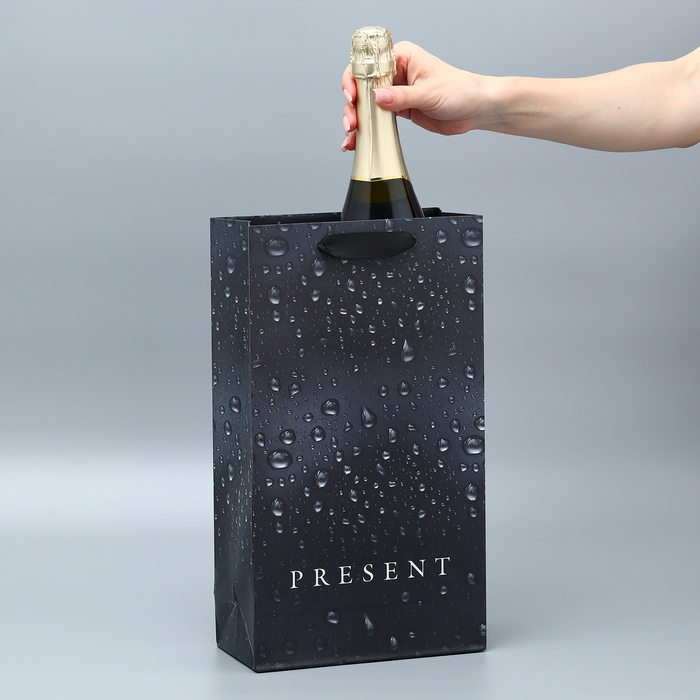 Пакет подарочный под две бутылки, упаковка, Black, 35 х 20 х 9 см
