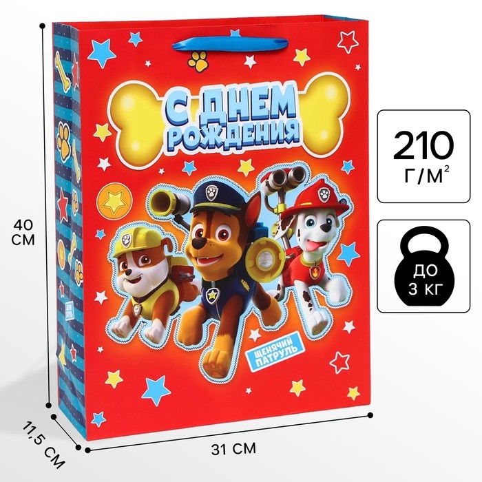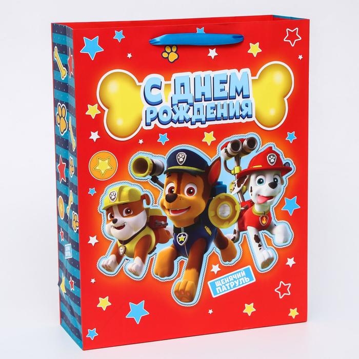 Пакет подарочный "С Днем рождения" 31х40х11 см, упаковка, Щенячий патруль