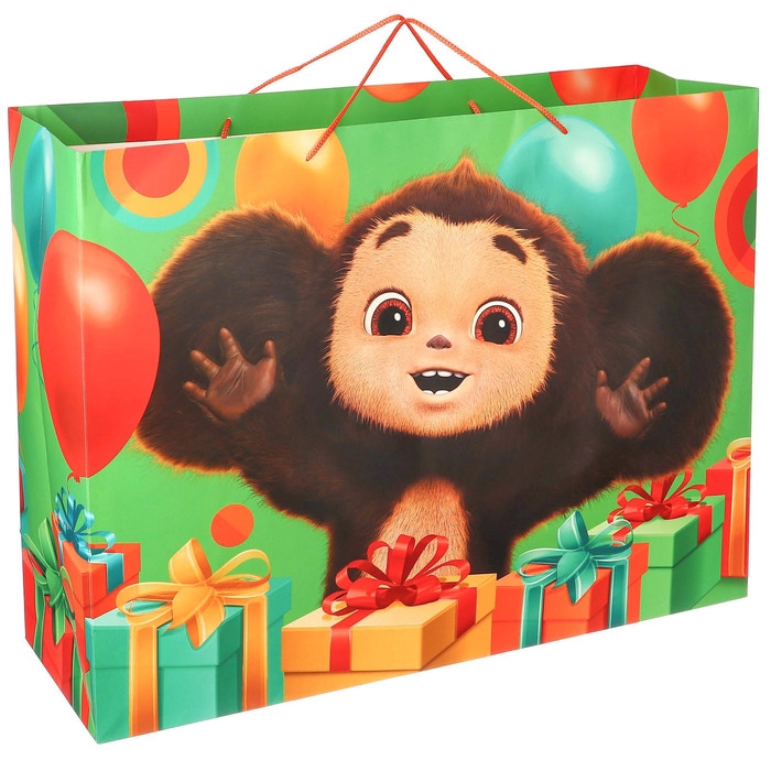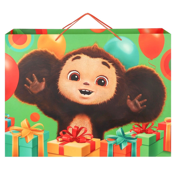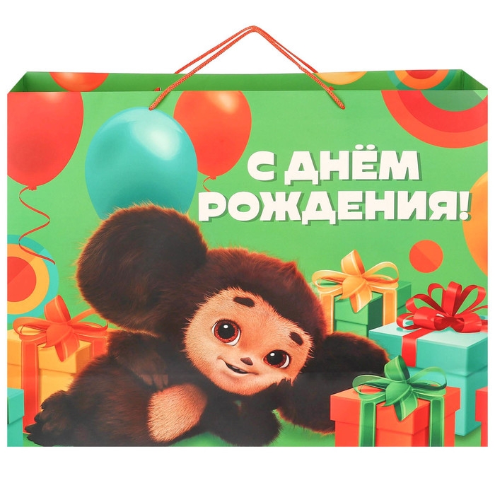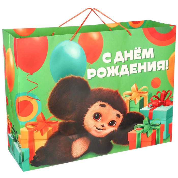 Пакет подарочный "С Днем рождения" 61х46х20 см, упаковка, Чебурашка