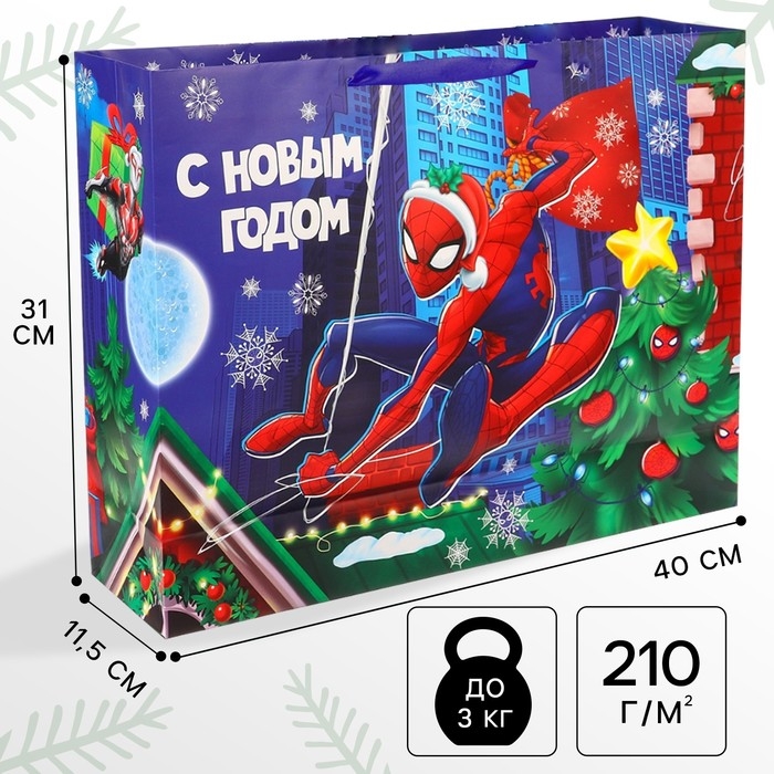 Пакет подарочный "С Новым годом!", 31х40х11 см, упаковка, Человек-паук