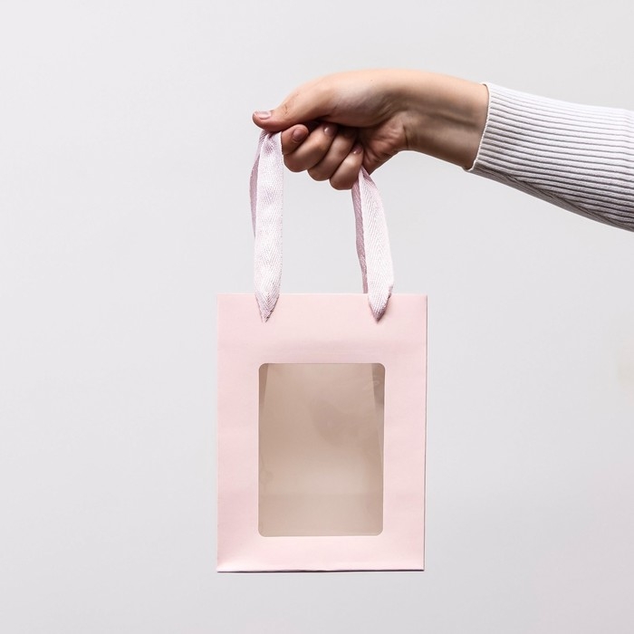 Пакет подарочный, с окном, 20 х 15 х 10 см, розовый 1шт.