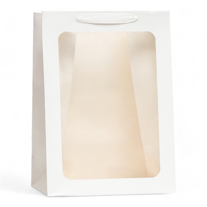 Пакет подарочный, с окном, 35 х 25 х 18 см, белый, 1шт.