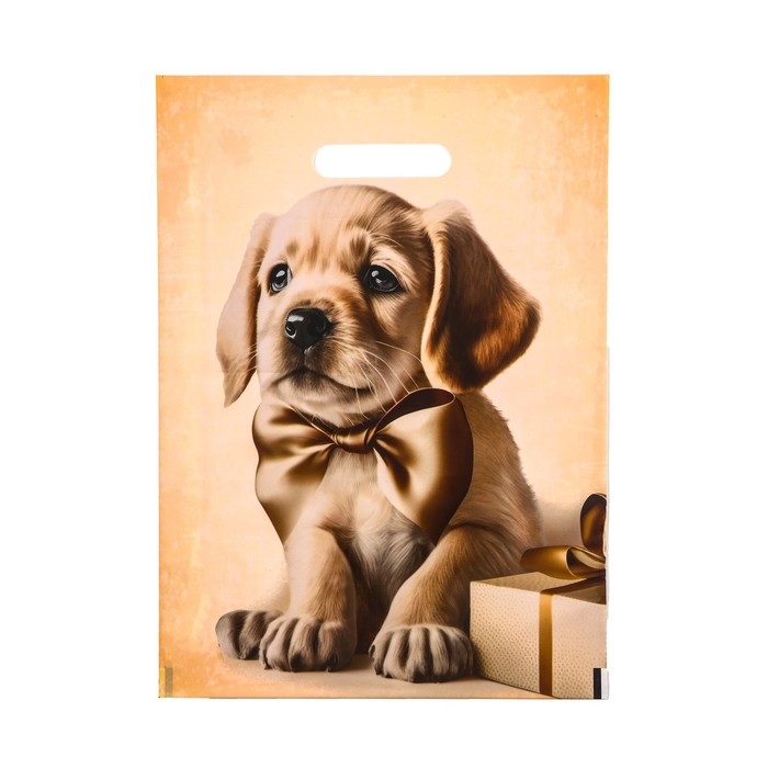 Пакет "Подарочный с собакой", полиэтилен. с вырубн. ручкой, 30 х 40 см, 50 мкм набор 10 штук
