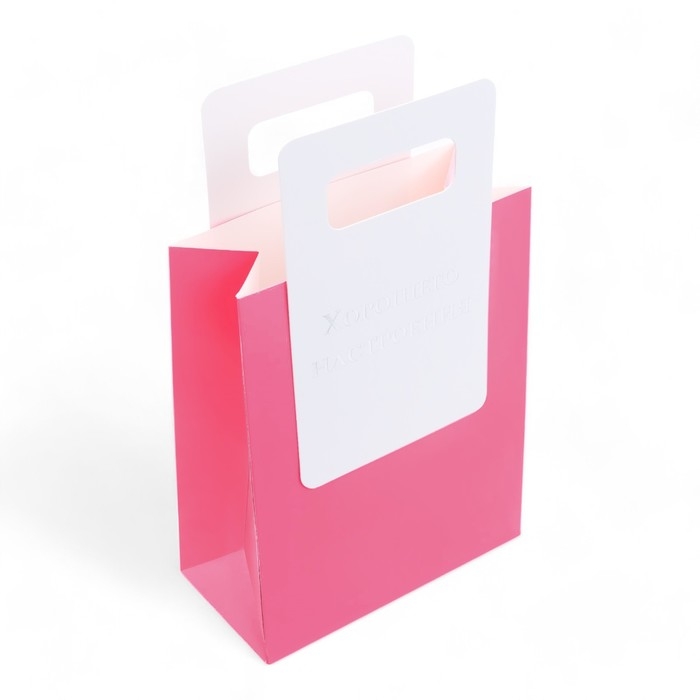 Особенность этого пакета – это уникальная вырубная ручка с тиснением, на которой нанесена изысканная надпись. Тиснение придает ручке утонченный текстурный эффект, который подчеркивает эксклюзивность упаковки и делает ее отличным выбором для особых случаев.