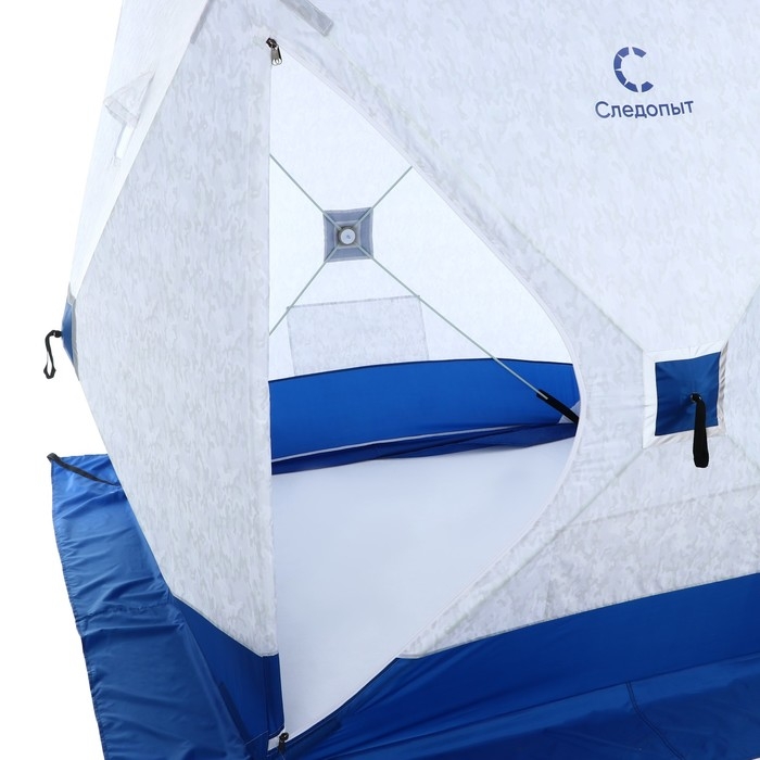 Палатка зимняя куб СЛЕДОПЫТ 1.8 х 1.8 м, ткань Oxford, цвет сине-белый с принтом