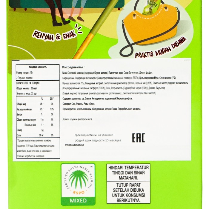 Палочки поки Pocky GLICO "Зелёный чай" в белом шоколаде, 33 г