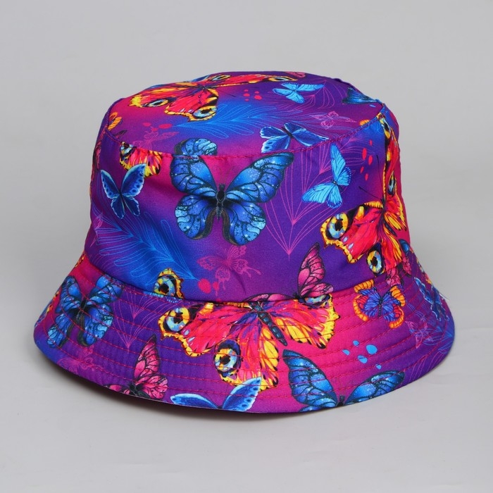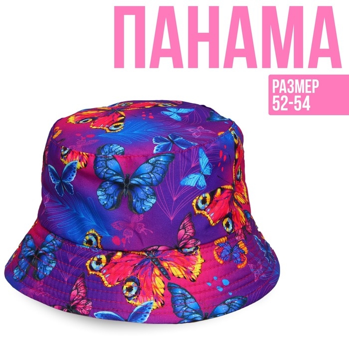 Панама детская для девочки «Бабочки», тёмная, р-р. 52-54 см