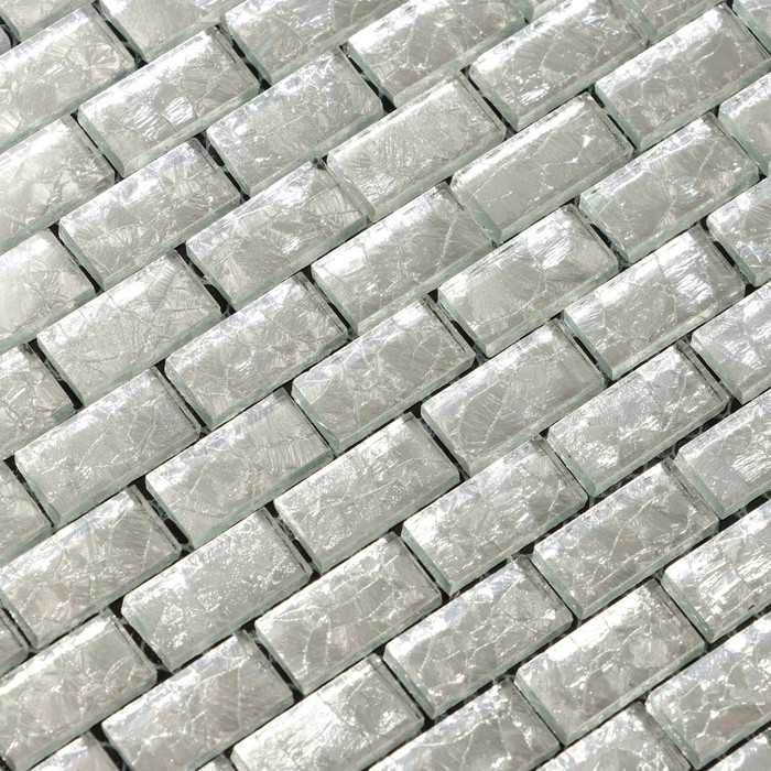 Панель самоклеящаяся 28*28см мозаика кирпич, серебристый