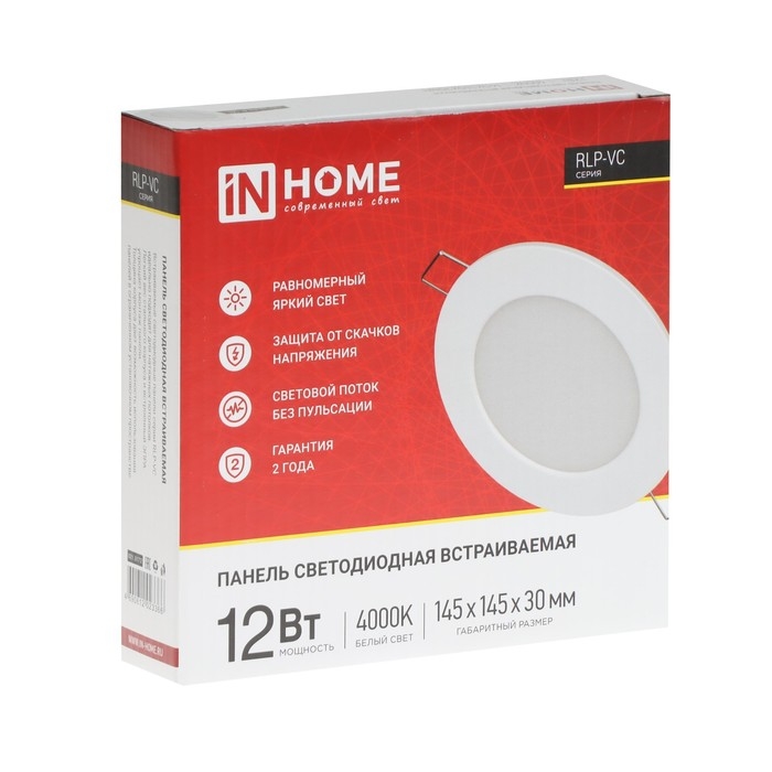 Панель светодиодная IN HOME RLP-VC, 12 Вт, 230 В, 4000 К, 960 Лм, 145x30 мм, круглая, белая