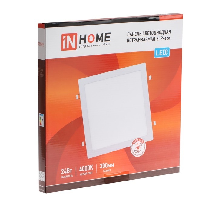 Панель светодиодная IN HOME SLP, 24 Вт, 230 В, 4000 К, 1680 Лм, 300 мм, белая, квадрат, IP40