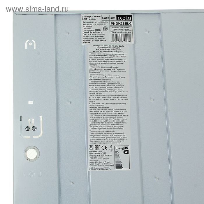 Панель светодиодная универсальная Ecola, 36 Вт, 2880 Лм, 6500 К, 220 В, призма, с ЭПРА