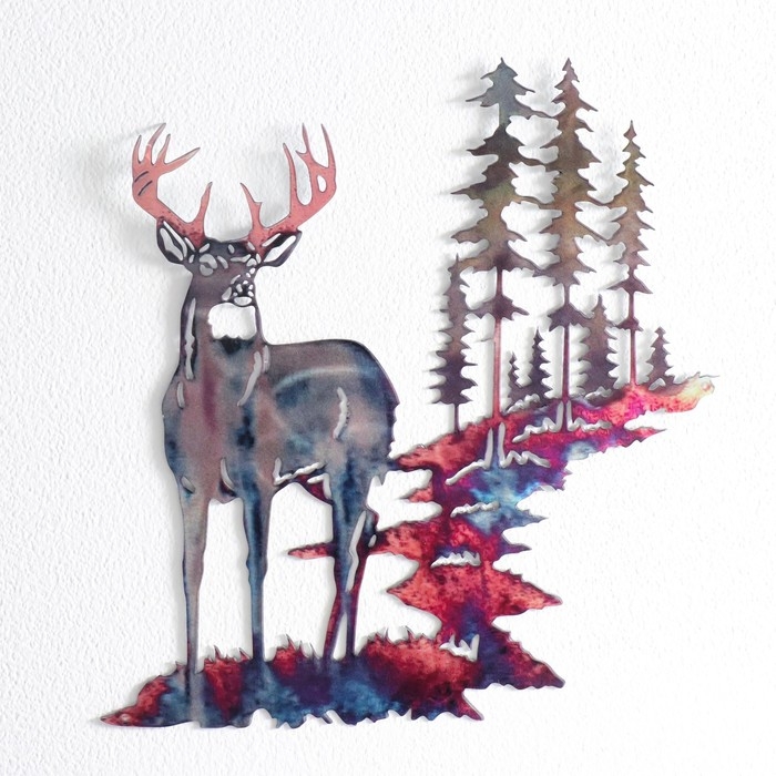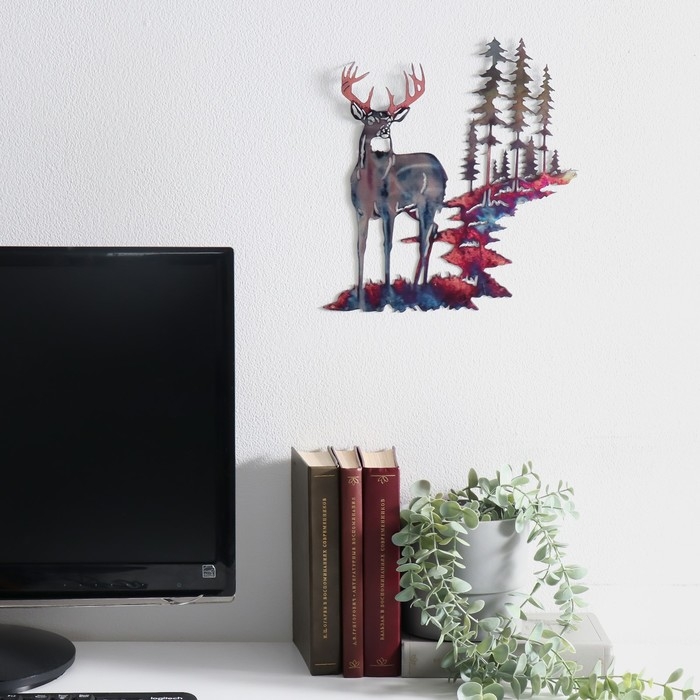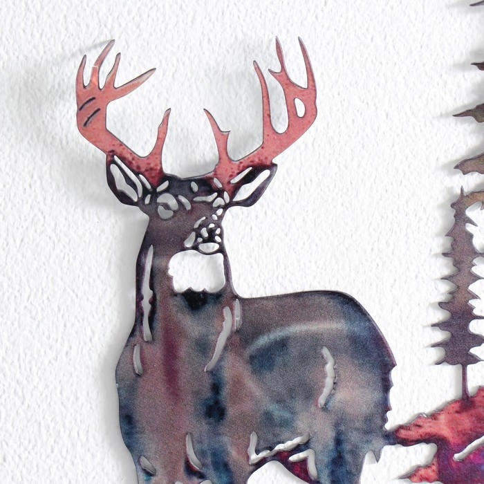 Панно интерьерное металл "Белохвостый олень в лесу" 26х28,2 см
