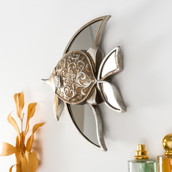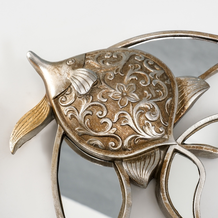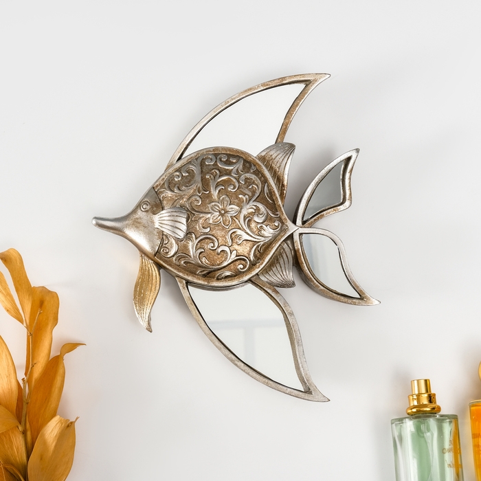 Панно интерьерное полистоун "Зеркальная рыбка с узорами" серебро 21х4х24 см