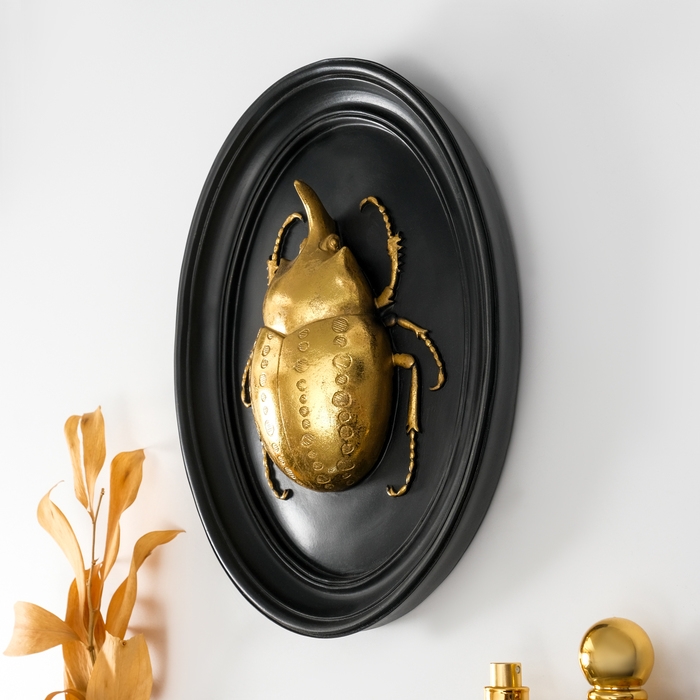 Панно интерьерное полистоун "Жук носорог" чёрный с золотом 21х5х27 см