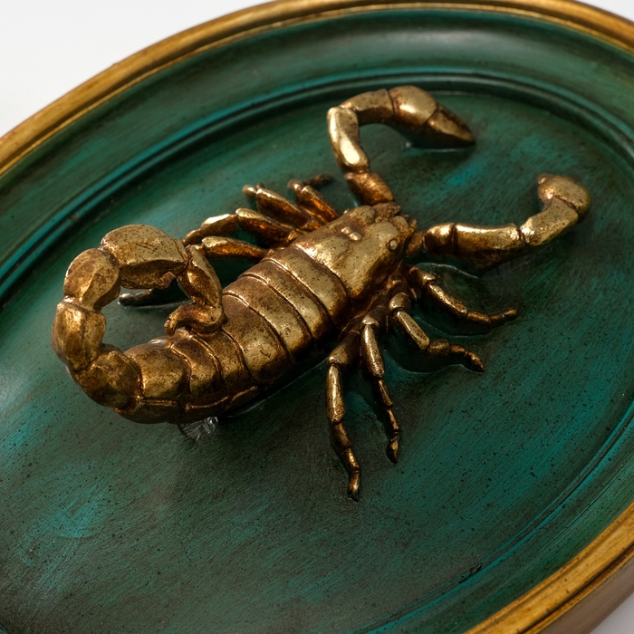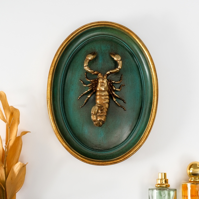 Панно интерьерное полистоун "Золотой скорпион" тёмно-зеленый 19х6х24 см