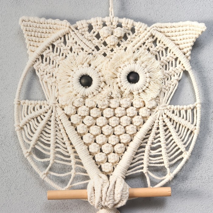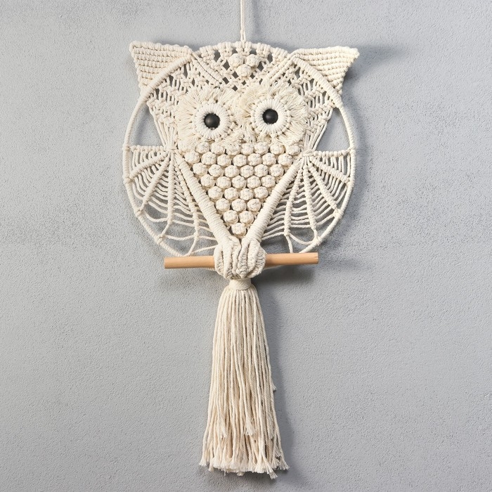 Панно настенное в технике макраме "Совёнок" 60х30 см