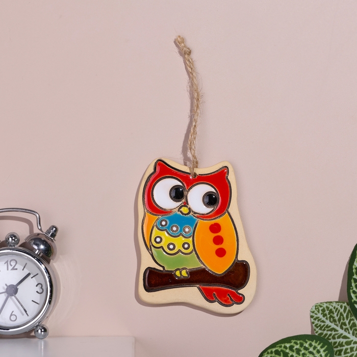 Панно "Сова", 7 см, майолика